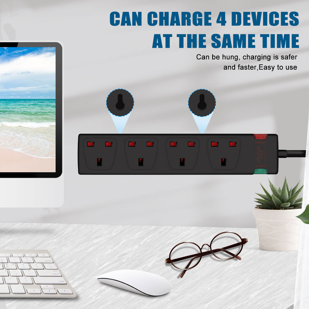 ExtraStar 4-Gang Unswitched Surge Protected Extension Lead (3m, Black) is a safe and reliable power solution for your home, office, or workspace. Designed with built-in surge protection, it helps safeguard your electrical devices against unexpected power spikes and surges. The surge and power indicators provide a clear visual status, ensuring safe and efficient operation. With a durable 3-metre cable, this extension lead offers extended reach and flexibility for your power needs.