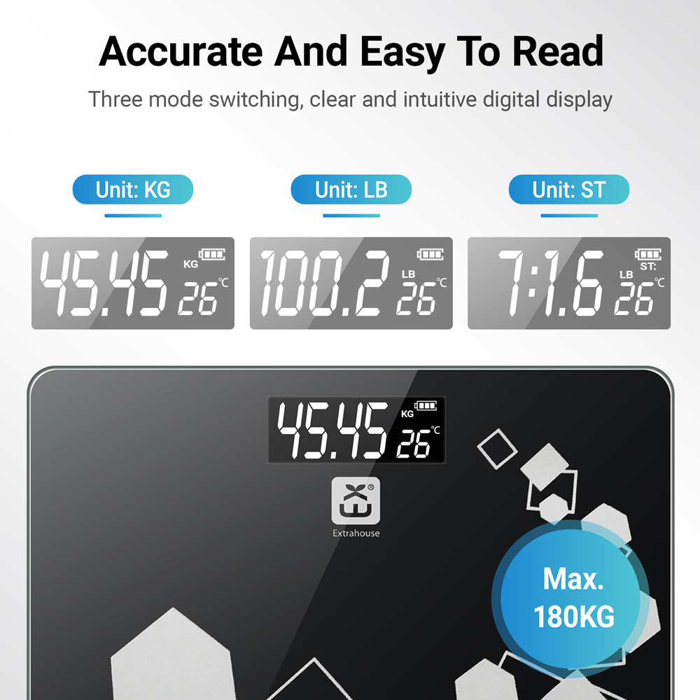 Discover precision with the Extrastar Digital Body Scale, perfect for any bathroom. Powered by 2xAAA batteries, this stylish scale ensures consistent accuracy for monitoring your weight. It features an easy-to-read digital display and a modern, minimalist design that complements any décor. The user-friendly interface allows for quick and effortless measurements, making it an essential tool for your health and fitness routine. Reliable and durable, the Extrastar Digital Body Scale is your go-to gadget for precise weight management. Enhance your lifestyle with this essential bathroom accessory.