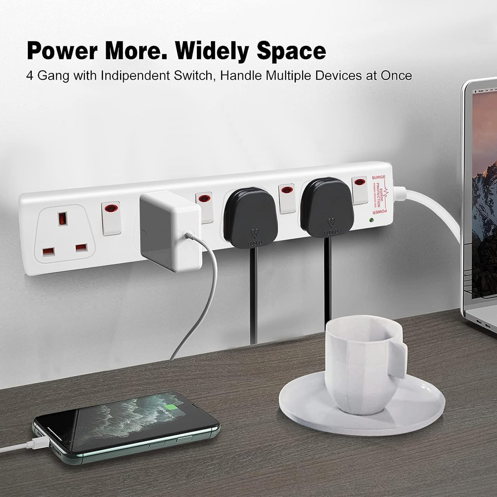 ExtraStar 4 Gang Individually Switched Surge-Protected Extension Lead (Model: KF-ESBD-4K4) is an excellent choice for home or office use. Designed with individual switches for each socket and integrated surge protection, it provides convenience, safety, and control for your devices. The 1-meter cable length ensures flexible placement, while its compact design is perfect for limited spaces.
