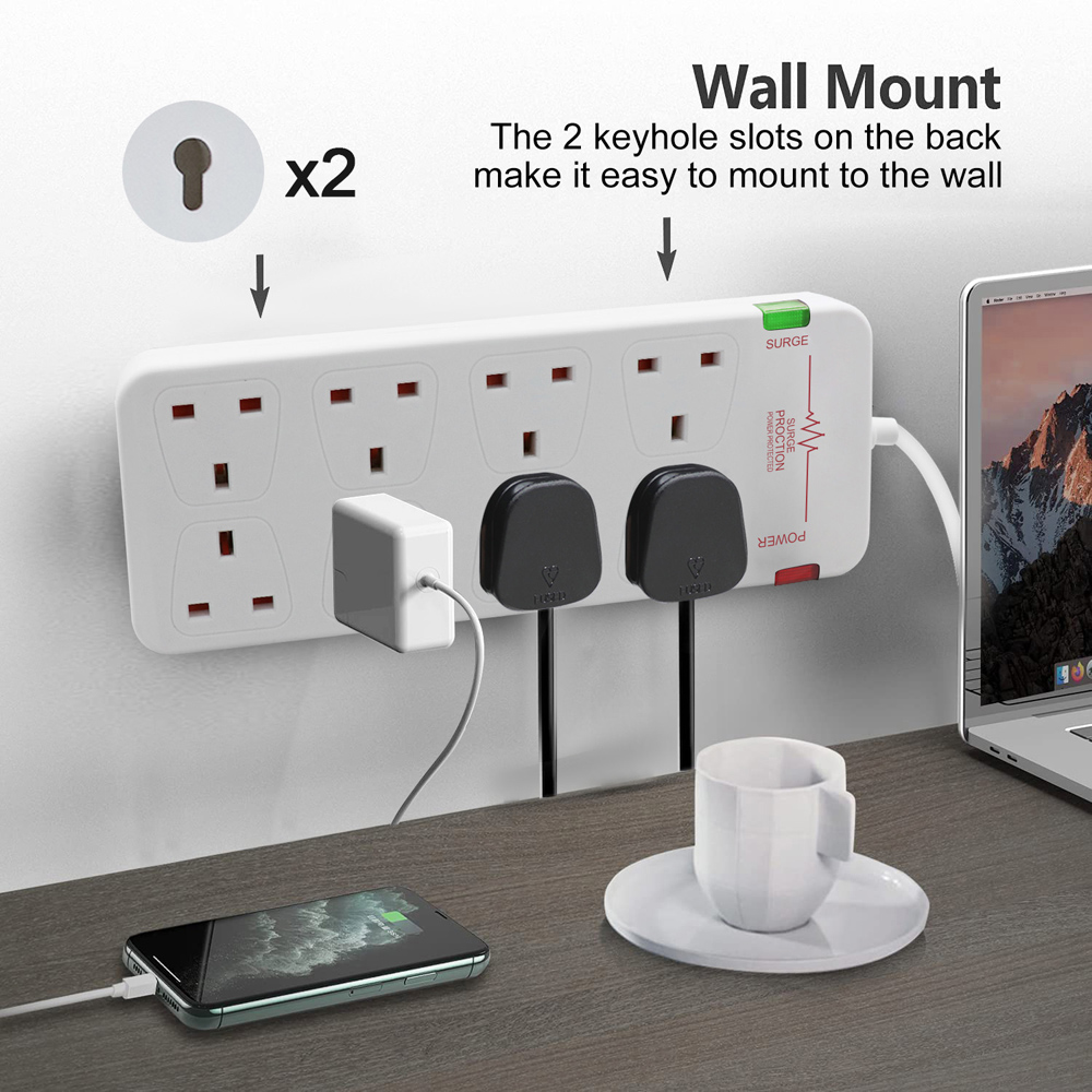 ExtraStar 8-Gang Unswitched Surge Protected Extension Lead (3m, White) is a safe and reliable power solution for your home, office, or workspace. Designed with built-in surge protection, it helps safeguard your electrical devices against unexpected power spikes and surges. The surge and power indicators provide a clear visual status, ensuring safe and efficient operation. With a durable 3-metre cable, this extension lead offers extended reach and flexibility for your power needs.