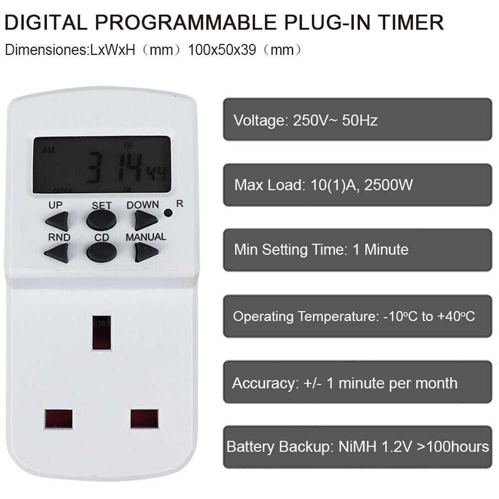The Extrastar Digital Programmable Timer offers a convenient and energy-efficient way to automate your electrical devices. Featuring a digital display and multiple programmable settings, it allows for precise control over your appliances with customisable on/off schedules. Ideal for lighting, heaters, and kitchen gadgets, this user-friendly timer helps to save energy and enhance security. With a plug-and-play design, setting up is quick and easy, while the manual override function provides added flexibility. Designed for reliability and convenience, the Extrastar Digital Timer is a perfect solution for managing your home or office appliances effortlessly.