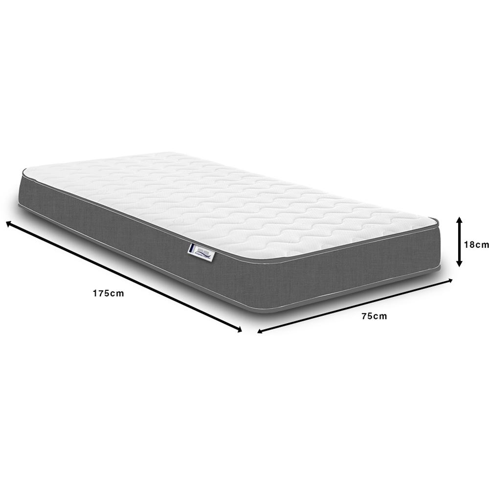 The design construction of this Extreme Comfort Cooltouch Colours Shorty Grey Memory Foam and Open Coil Spring Mattress is perfectly suited for kids' beds, bunk beds, spare rooms, guest beds, lofts, and apartments or as a low-cost excellent-value mattress option for everyday use. Extreme’s Cool Touch Core top cover fabric provides luxuriously soft comfort, cosiness and is also highly breathable - helping body temperature regulation; preventing overheating whilst sleeping. It is quilted in a different colour fabric to best suit your interior colour. This mattress is hand-made by experienced craftsmen at eXtreme Comfort's West Yorkshire mattress factory and is fully compliant with all relevant UK fire safety regulations for domestic use.