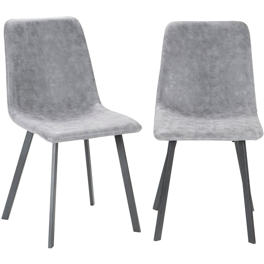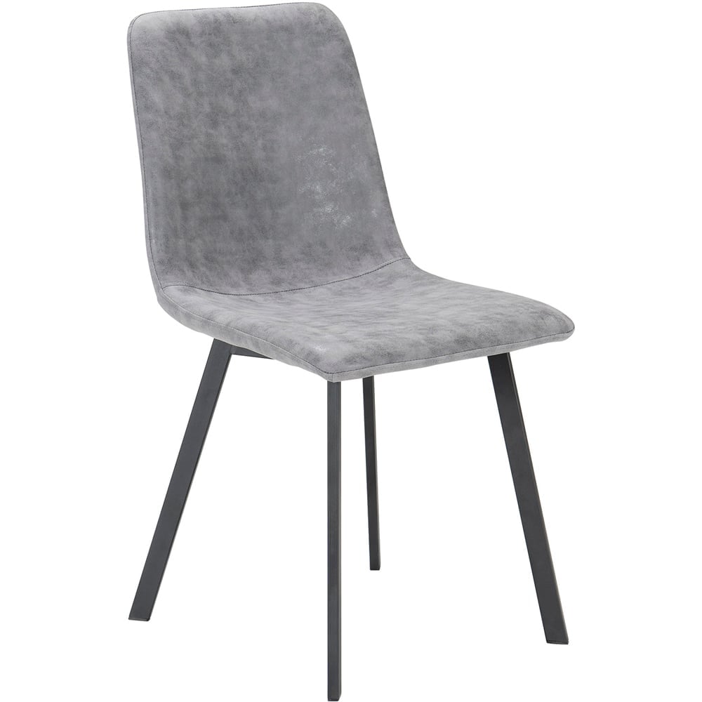 Complete your modern dining room aesthetic with this Ezra Dining Table & 4 Grey Chairs Set. The striking dining table features a large grey-washed wood-effect surface, providing ample space for up to six people. Its unique industrial design showcases six black metal legs crossing in alternating directions for added stability. Complementing the table are four dining chairs, upholstered in distressed faux leather and supported by sturdy black powder-coated metal legs.