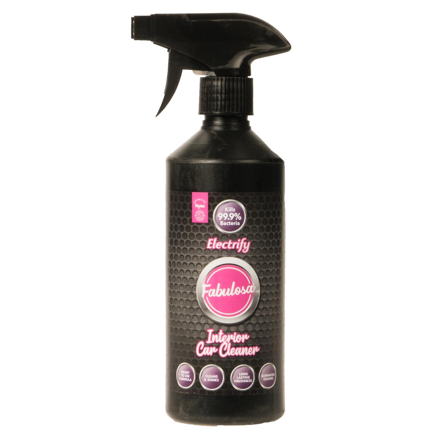 Bring cleaning power and a fresh scent into your car with this Fabulosa Interior Spray Electrify. This powerful all-purpose cleaner is ideal for high-traffic surfaces such as dashboards, gloveboxes, consoles and steering wheels.