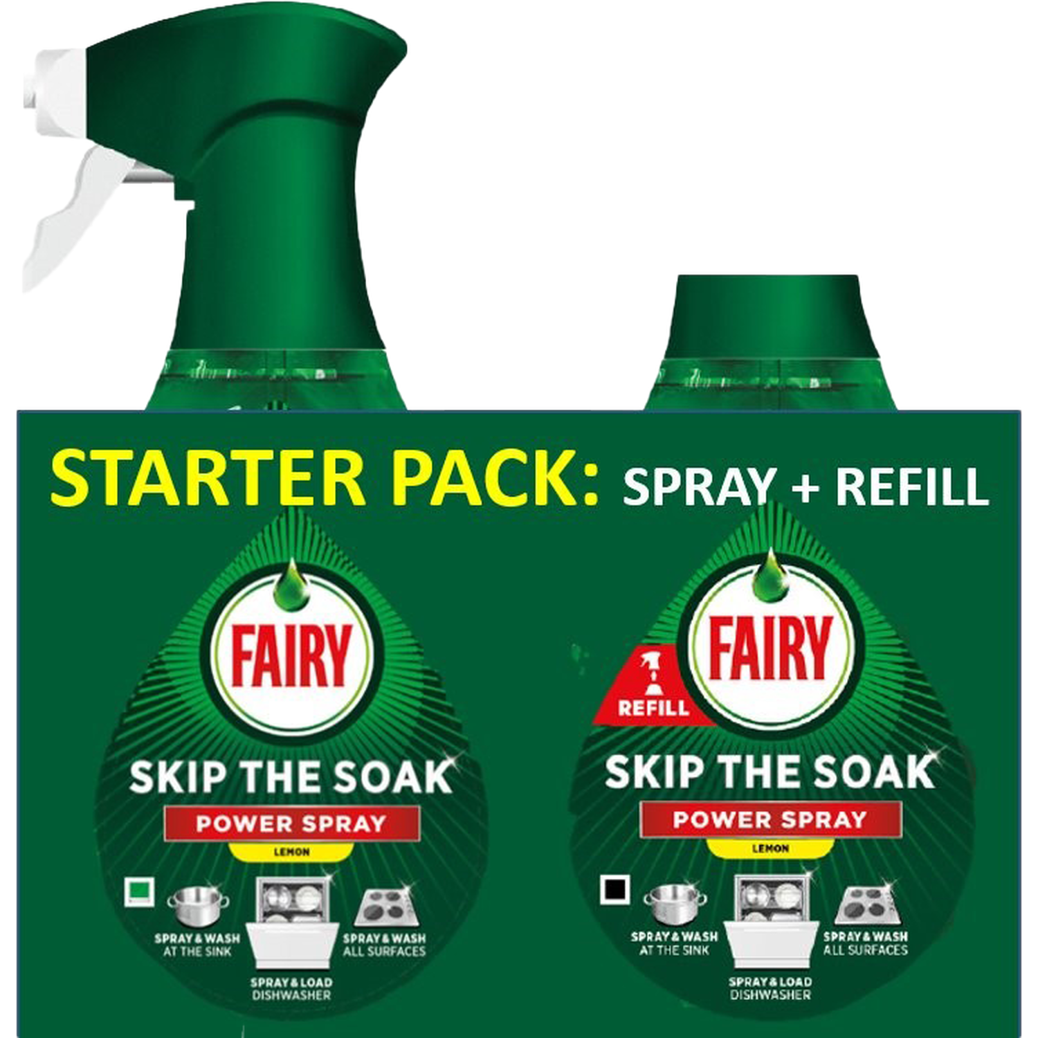 Achieve a sparkling clean finish for your dishes with Fairy Lemon Power Spray and Refill Starter Pack 1.3L. Featuring a unique formula, this power spray allows you to pre-treat dishes quickly and efficiently, providing the benefits of an overnight soak in just a few minutes. Including a power spray and refill, this starter pack is perfect for giving dishes and kitchen surfaces an excellent clean.