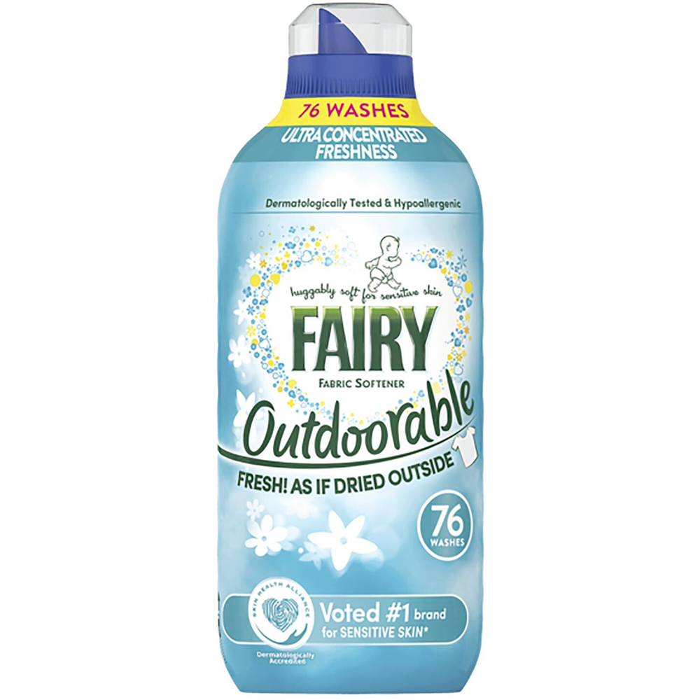 Give your clothes a fresh scent with every wash with Fairy Outdoorable Fabric Conditioner 76 Washes. It gives it a gentle, outdoor fresh scent with the ultra-concentrated formula. This formula softens without irritation and is dermatologically tested and hypoallergenic. It is made to be kind to sensitive skin while keeping fabric soft and comfortable. Simple to use, with lasting freshness in every load.