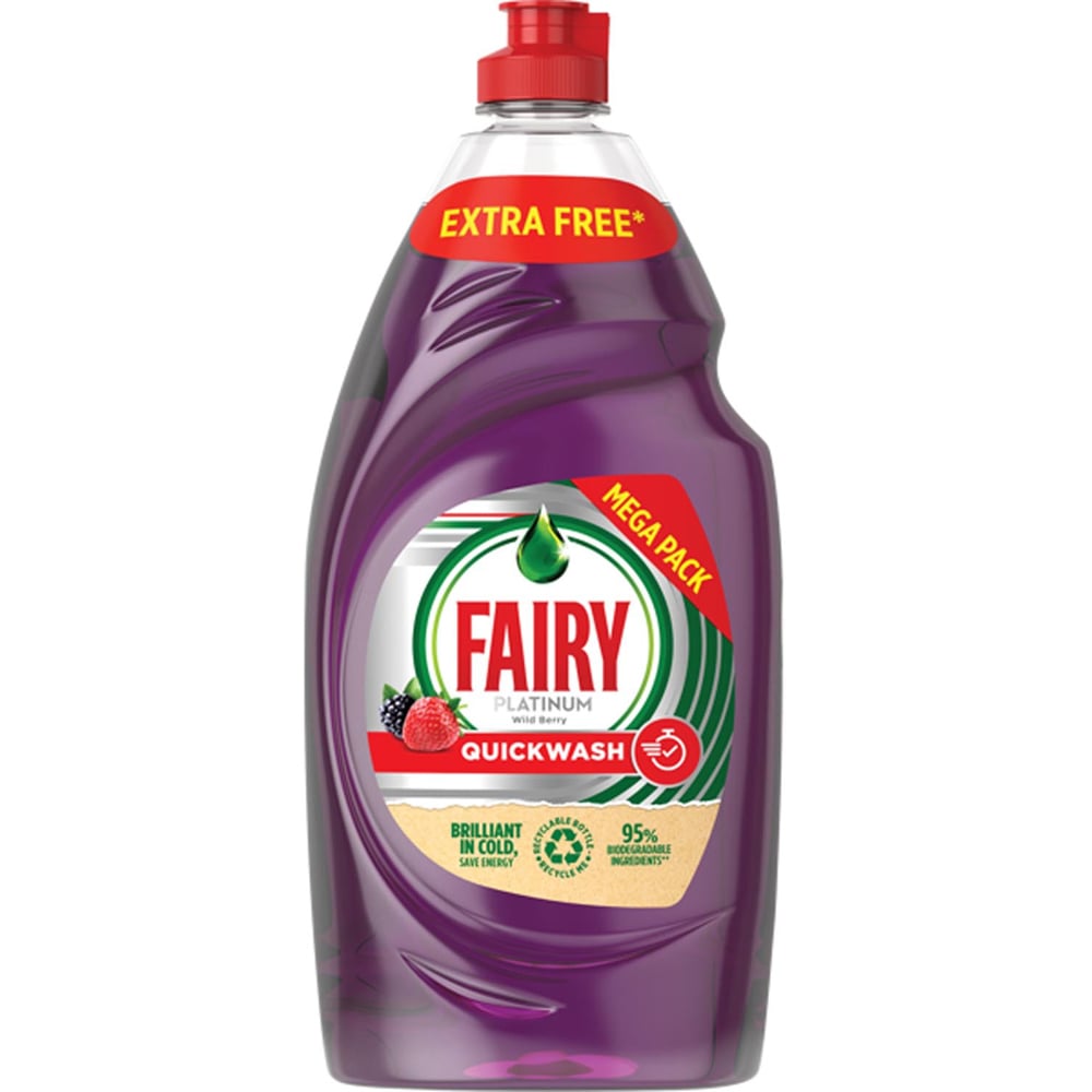 Transform your dishwashing routine with the extraordinary Fairy Platinum Quickwash Berry Washing Up Liquid 870ml. This exceptional formula effortlessly breaks down stubborn grease, saving you time while ensuring your dishes are left sparkling clean. With long-lasting suds produced from every drop, it tackles even the toughest pots and pans, delivering pristine results without the need for soaking.