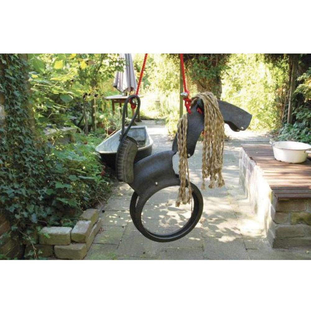 Gallop into hours of outdoor adventure as children enjoy the playful design of this horse tyre swing, crafted from recycled rubber and suspended with a vibrant red adjustable rope for extra fun in any garden. Children will love the comfortable seat, and parents can relax knowing it's made with sturdy materials, making every swing safe and cheerful for little riders. Whether you're in the UK or Ireland, let imaginations run wild with this unique garden addition.