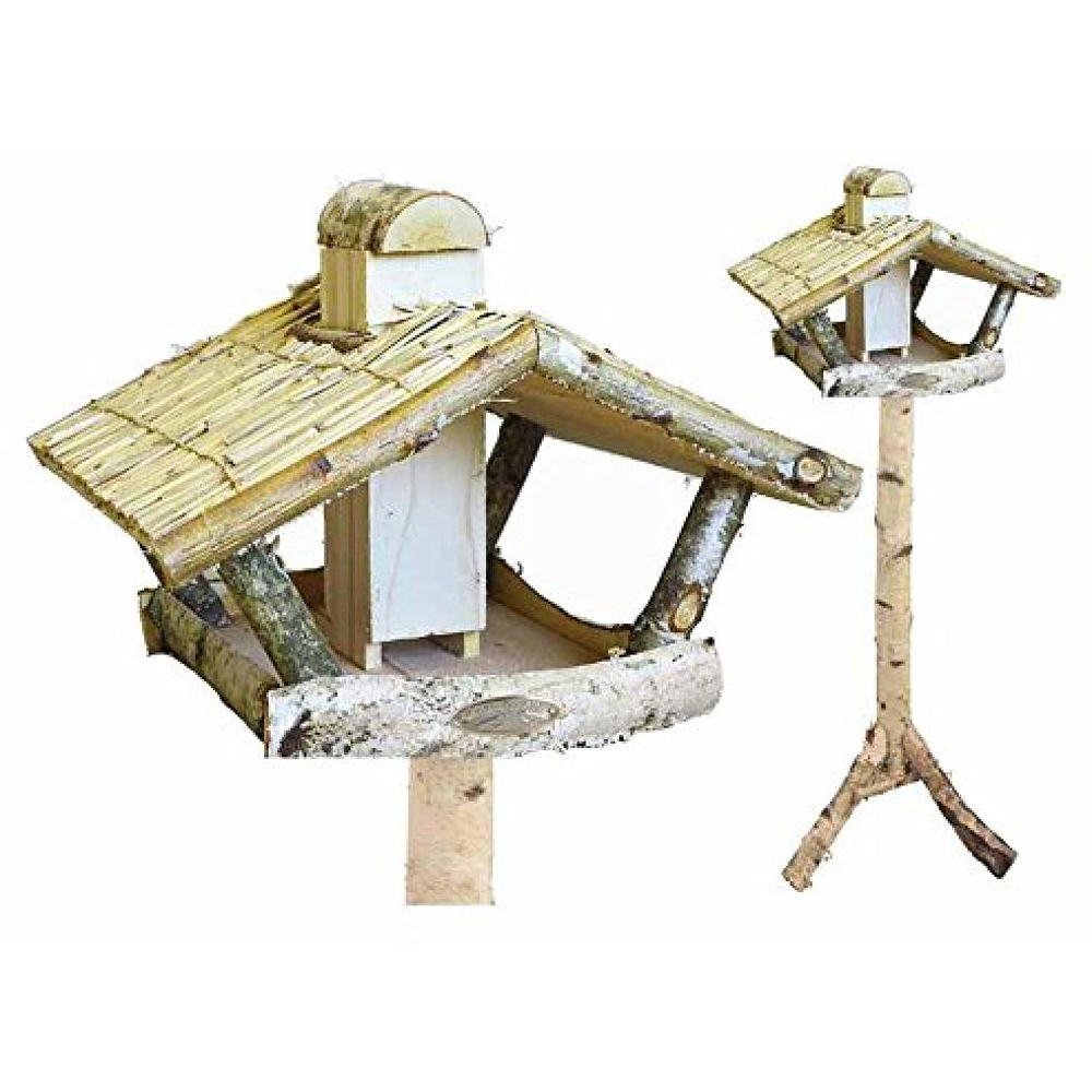 Invite a flurry of feathered visitors to your garden with a charming rectangular bird table on pole, crafted from birch wood, fir wood and reed for a natural touch and finished with a thatched roof to keep feed dry. Enjoy watching wild birds gather on the raised feeding platform, whether your space is large or small, while the multi-toned design blends beautifully with any outdoor setting.