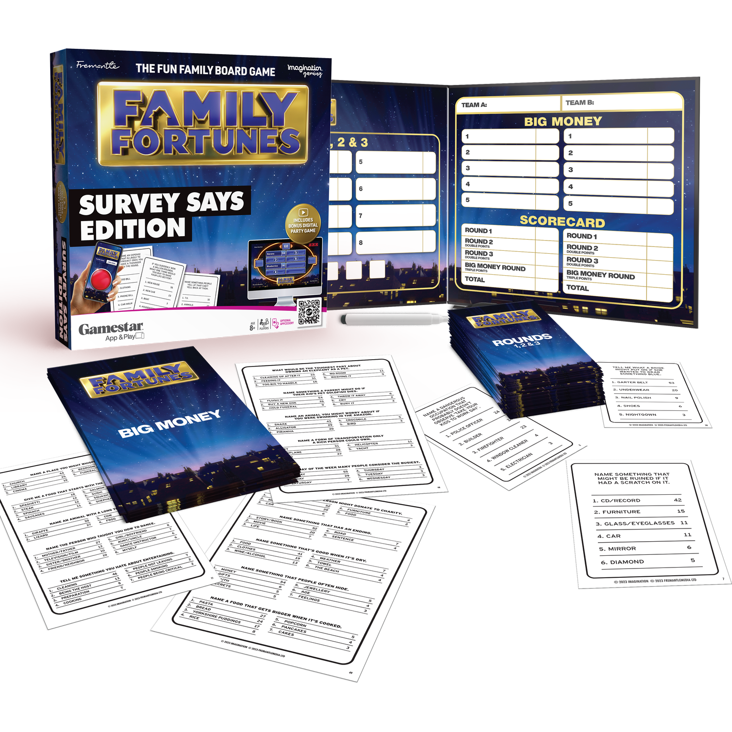 Make family time more fun with this exciting Family Fortunes Game. It brings the classic TV game show to your home, allowing you and your loved ones to compete for big rewards and boasting privileges. With hundreds of unique questions, it offers limitless enjoyment for players of ages eight years and above.