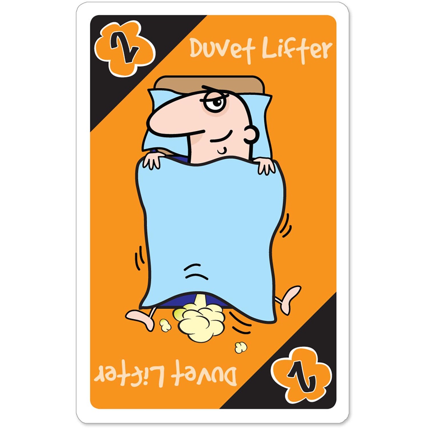 Fart: The Explosive Card Game is a breeze to learn, a gas to play, but a bit of a stinker to win. This explosive card game will leave you gasping! Instant fun from the off, the dilemma is when to use a gas mask. The object of the game is to score the least points by getting rid of your cards before your opponents. Get rid of your cards whilst avoiding the obvious hazards - think Uno but with fart cards! The Silent but Deadly reverses the direction of play, whilst the Barn Burner means you can steal your opponent's hand. Protect yourself against whiffy attacks with the gas mask card and thwart your opponents with your Butt Trumpet or your Thunder Pants. A great card game for the whole family, this is sure to become a firm favourite.