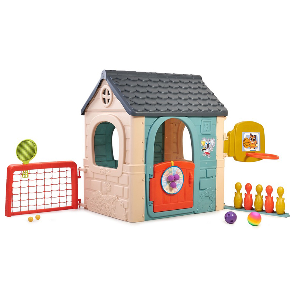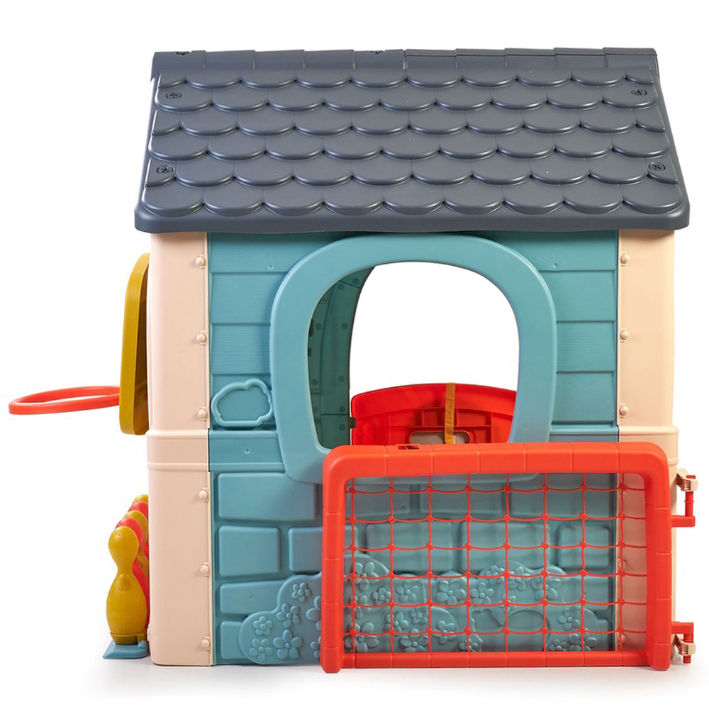 - 6 fun activities in 1 compact playhouse