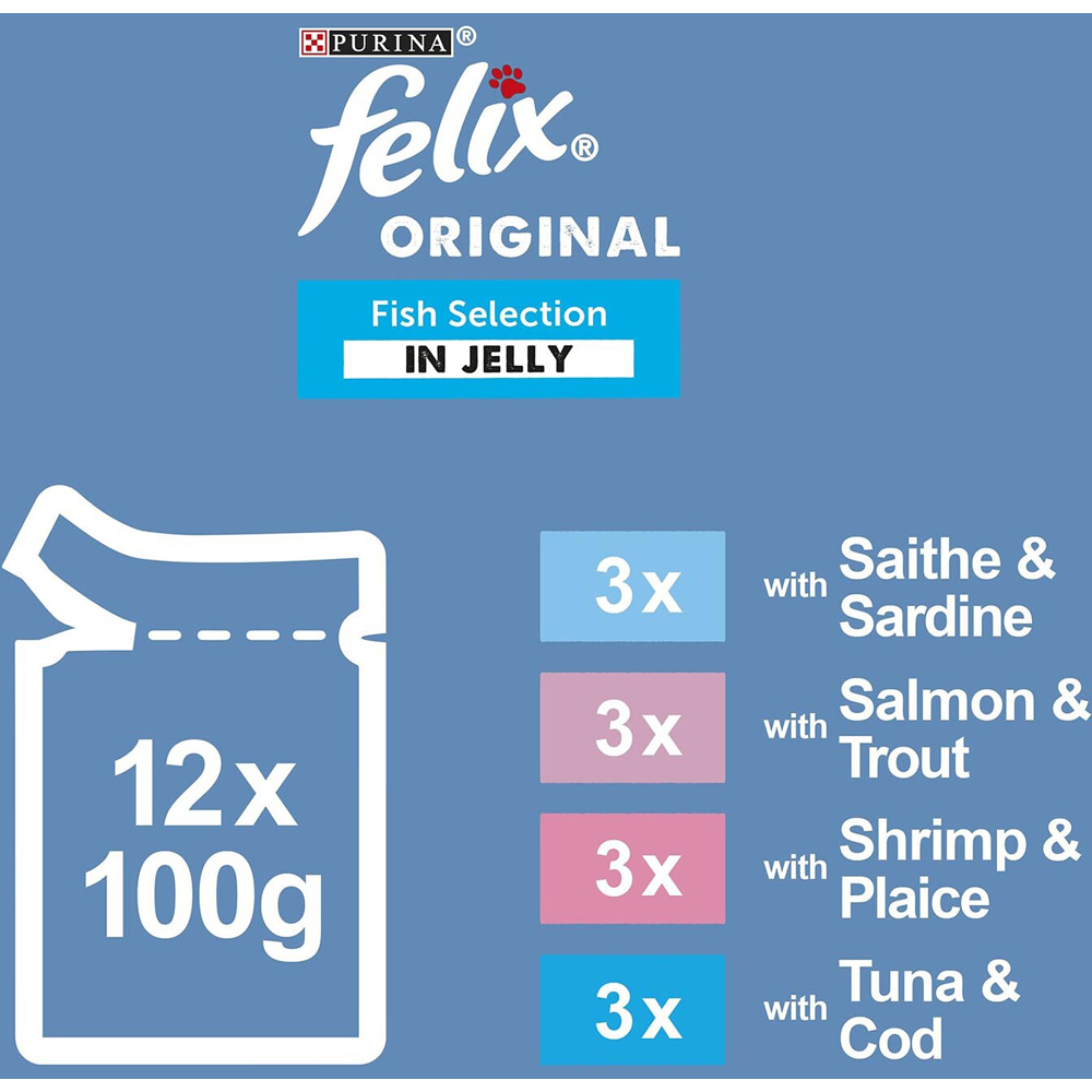 Treat your cat to the irresistible taste of Felix Fish Selection in Jelly Wet Cat Food 12 Pack. Crafted for adult cats, each pouch offers a variety of tempting flavours like salmon and trout, tuna and cod, and more. Packed with Omega 6, essential minerals, and vitamins D and E, it supports daily health and vitality- mealtime has never been so exciting.