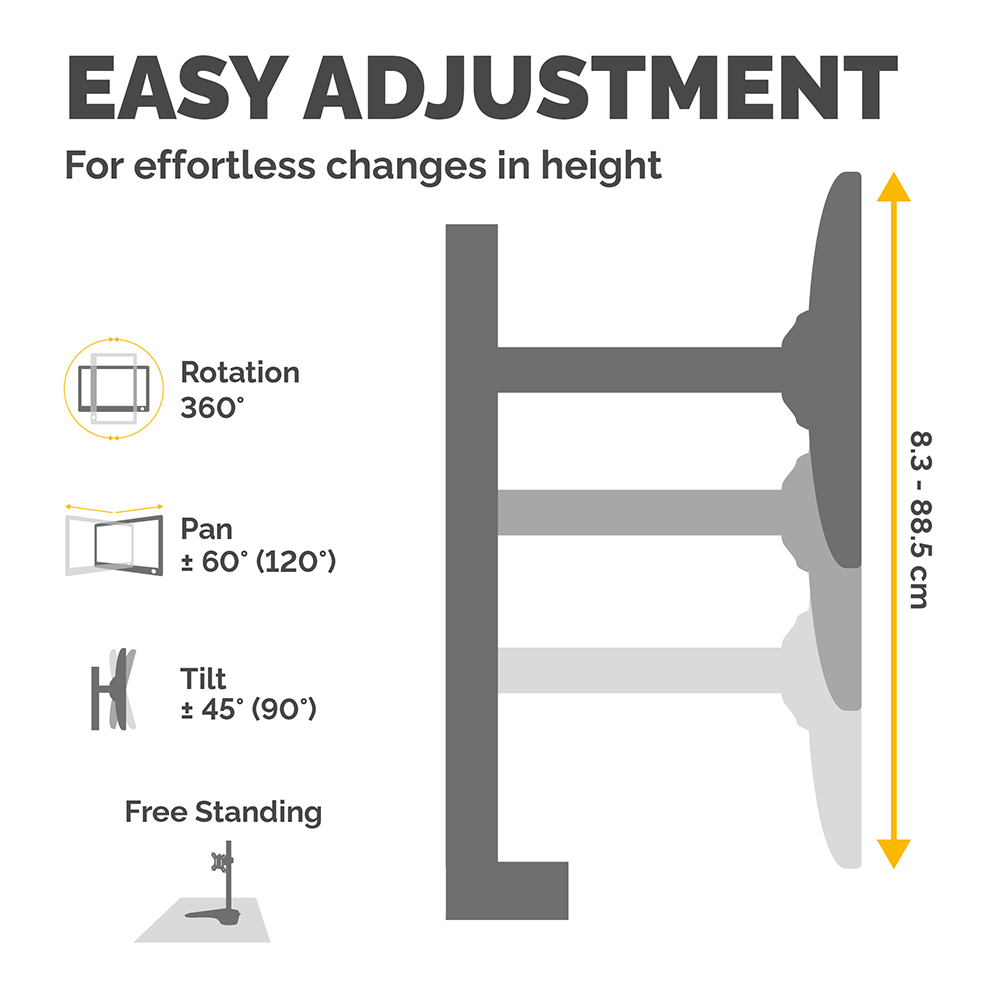 Elevate your home and office work experience with the Fellowes Seasa Dual Stacking Monitor Arm. This dual monitor stand will improve your ergonomic posture and reduce back neck and eye strain. Dual-screen working means you can view more and can use multiple programs simultaneously. It has effortless adjustment so you can collaborate and share information with colleagues easily, making them perfect for hot desks or shared desks. This double monitor stand is ideal for any workspace with its stylish and convenient design. This fully adjustable dual monitor arm can pan 120° and can be tilted plus or minus 45° with 360° rotation for optimum viewing control. An intuitive cable management system and low-profile base help you minimise clutter with this monitor arm. Its free-standing ability enables dual monitors to be used in spaces that do not allow a clamp or grommet mount, each arm can hold up to 8kg monitors with a maximum screen size of 32 inch and meets VESA monitor bracket standards.