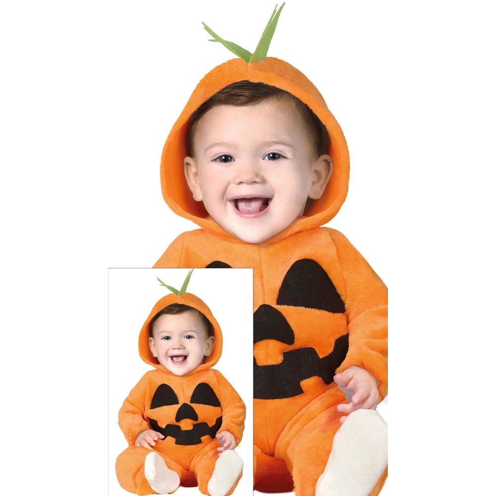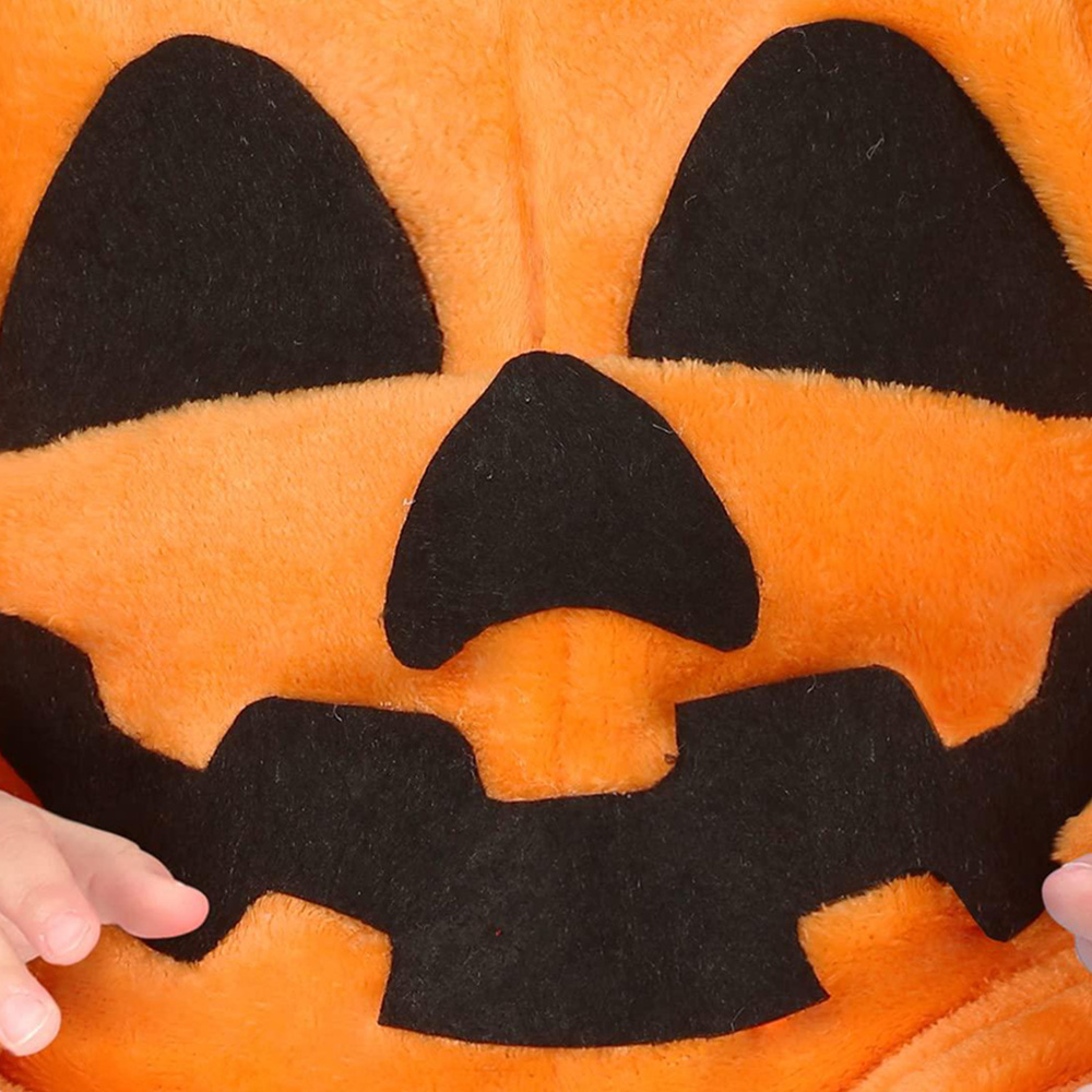 This adorable pumpkin costume in orange and black polyester is perfect for babies aged 12–18 months. With a one-piece suit and soft fabric, it’s comfy and easy to wear, ideal for Halloween photos or festive fun.