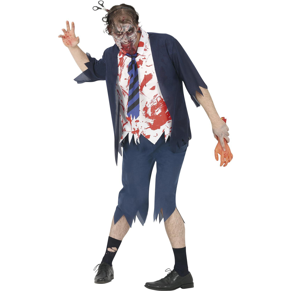 Looking for a frightfully good time? This Adult Zombie High Schooler costume in blue and white polyester is perfect for adults size 52-54 (L). It includes a shirt, jacket, and trousers, designed to make dressing up super easy and enjoyable. Get ready to haunt the halls of your next themed party with this fun outfit.