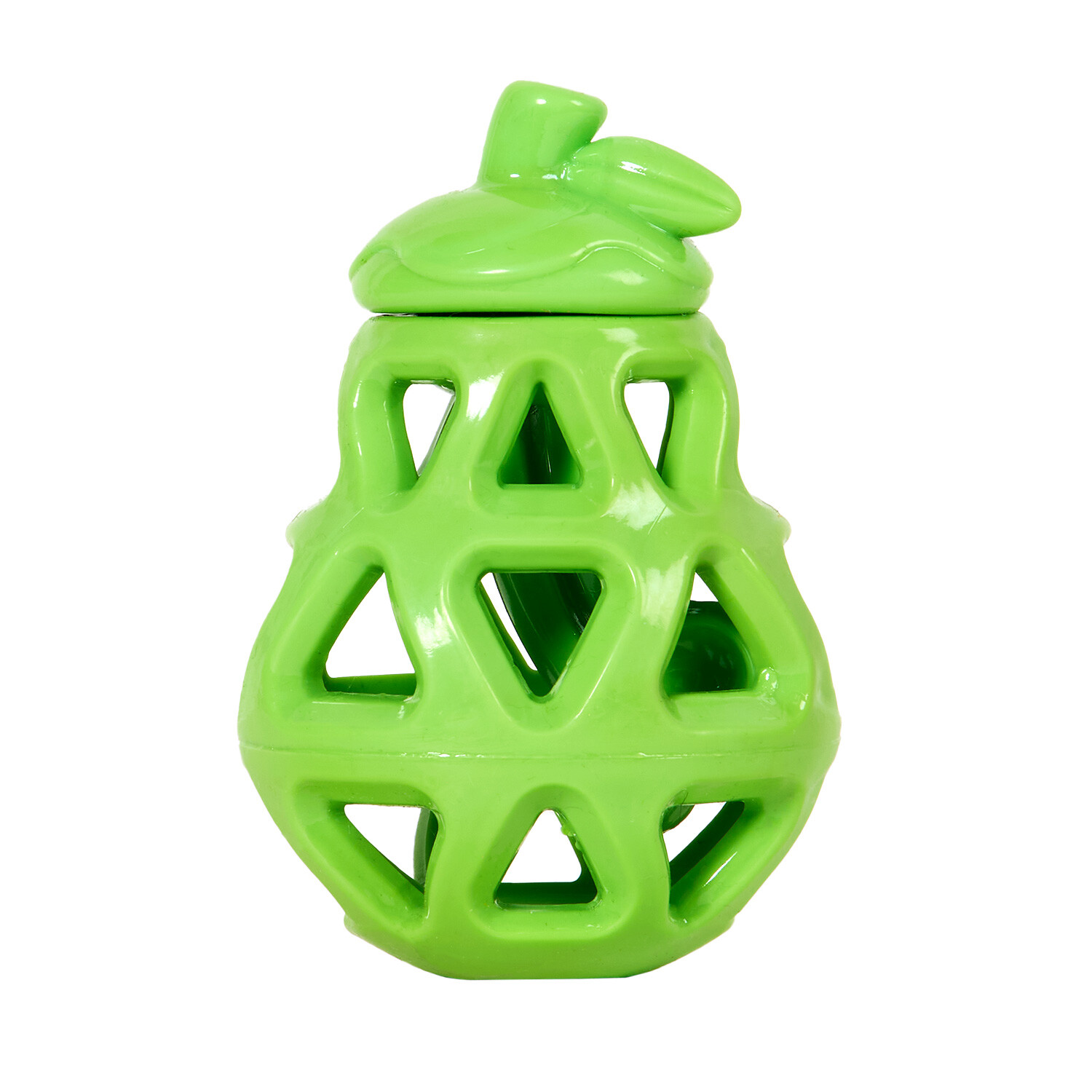 Keep your pet cool on hot days with this Clever Paws Fillable Freezable Fruit Treater Dog Toy. This vibrant toy is perfect for helping your dog feel happy and relaxed during summertime. You can fill the toy with treats or paste and let your pooch enjoy playing with it. This treater toy is available in three assorted designs - strawberry, orange, or pear.