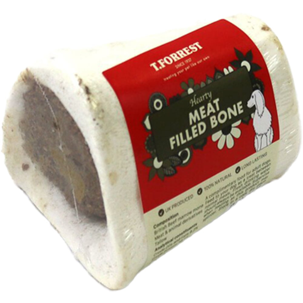 Our Filled Bone is a delicious, nutritious natural dog treat that is the perfect way to spoil your pooch or reward them for being good. This treat is made with British beef marrow bone that has been washed, dried, hollowed out, and then stuffed with nutritious and delightful meaty recipe filling. It has been air dried to lock in flavours and nutrients, as well as reduce the risk of splintering.