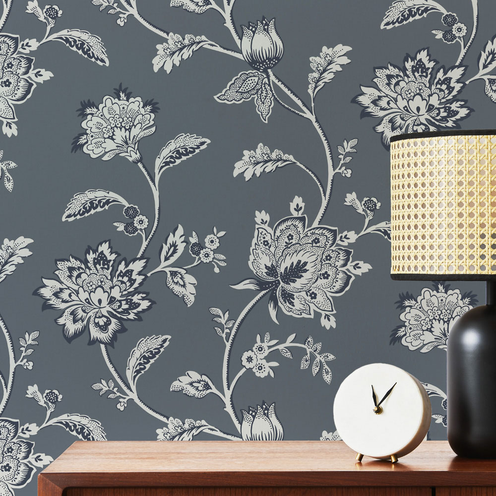 Transform your walls with Fine Decor Juliette Floral Blue Wallpaper. Indulge in the timeless allure with this wallpaper, meticulously crafted to evoke the romanticism of the Jacobean era. With a nod to historical elegance, this wallpaper features a captivating trail of lush floral motifs, intricately intertwined against a luxury textured backdrop. Elevating its charm, delicate mica highlights lend a subtle shimmer to each petal and leaf, reminiscent of the opulence of the Jacobean period. The textural feel adds depth and dimension to the design, creating a tactile experience that invites closer inspection. Whether adorning a feature wall or enveloping an entire room, this wallpaper can be perfectly partnered with Juliette Stripe to create a cohesive and harmonious ambiance that exudes style and sophistication.