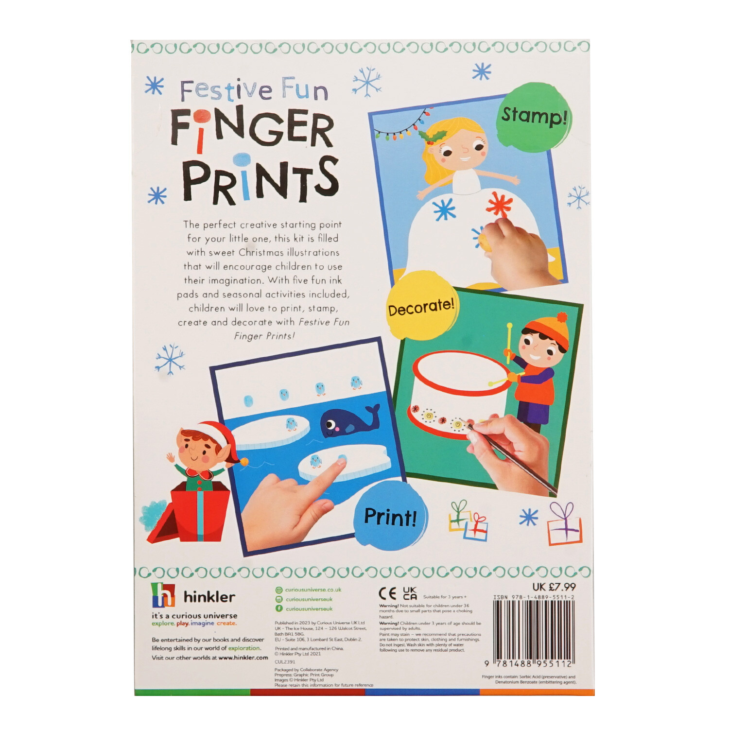 The perfect creative activity for your little one, This Finger Prints Kit Festive Fun is filled with sweet Christmas illustrations that will encourage children to use their imagination. With five fun ink pads and seasonal activities included, children will love to print, stamp, create and decorate with festive fun fingerprints.