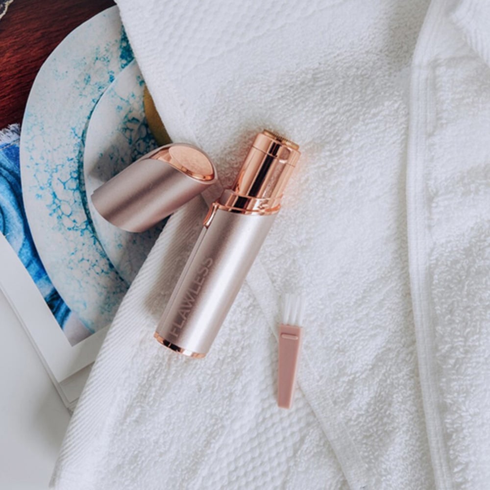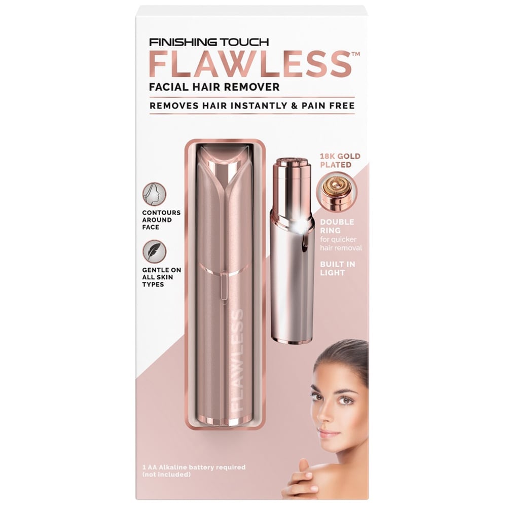 Achieve smooth, flawless skin anytime with the Finishing Touch Flawless Rose Gold Facial Hair Remover. This sleek, lipstick-sized device effortlessly removes unwanted facial hair quickly and painlessly, without irritation or downtime. Its 18-karat gold-plated hypoallergenic head glides gently over the chin, cheeks and upper lip, offering precision grooming that's safe for sensitive skin. Compact and discreet, it fits perfectly in any beauty bag, so flawless skin is always within reach.