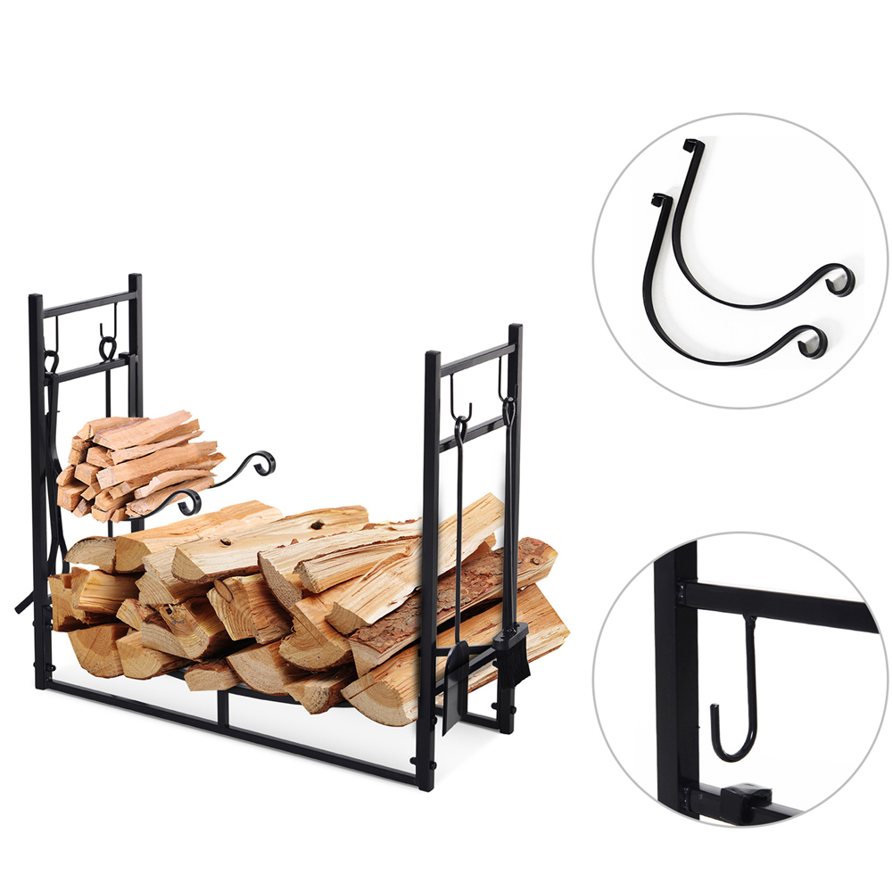 Keeping your fires burning bright all night starts with this rack set from Outsunny. The log holder includes a log poker, pincers to pick up and move logs, a broom and a shovel for keeping the area clean - offering everything you need together. It has a tough and strong metal frame which will fully support firewood logs up to 100kg and has a matte black finish for extra protection. The structure is tough to hold everything properly, with two small side hooks - a safe place for keeping smaller branches separated. This log holder basket is finished with a large base to keep it balanced and elevated so the wood keeps dry and clean.