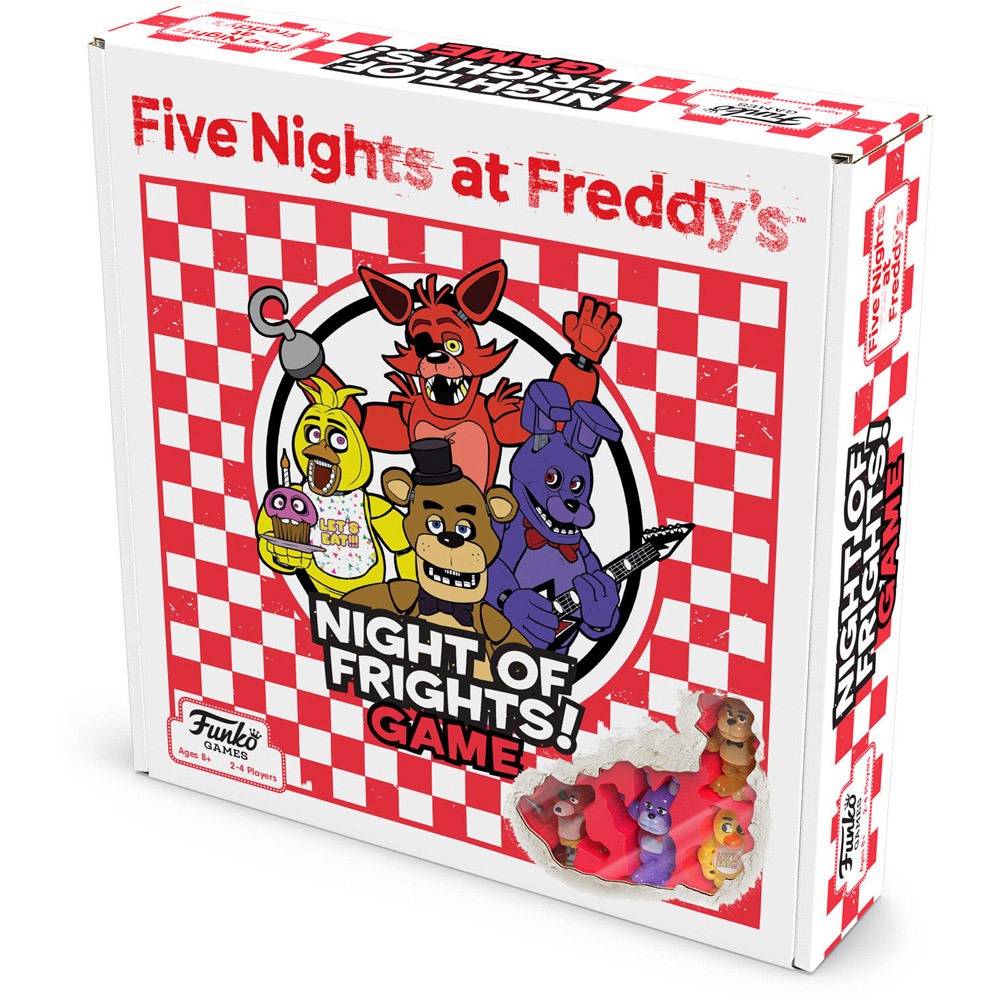 In the Five Nights At Freddy's Night of Frights Game, you’re the stars of Freddy Fazbear’s Pizza! Play as one of the terrifying animatronic characters and use your unique power to gain the upper hand. Creep through the restaurant, gathering items. Make yourself scarier and get to the security office. The first player to capture the guard wins! The game includes four detailed, painted figures of Bonnie, Chica, Foxy, and Freddy Fazbear, and the game is packaged in a thematic pizza box with a window to display the figures.