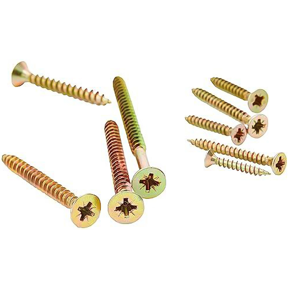 Yellow zinc passivated twin-thread countersunk screws provide exceptional corrosion resistance and are available in sizes ranging from 3 x 16, 3 x 20, 3.5 x 25, 3.5 x 30, 4 x 30, 4 x 35, 4 x 40, 5 x 40, 5 x 50, 5 x 60 and 5 x 80mm. Each is neatly packaged in a storage case with individual compartments, ensuring you have the right size at your fingertips.