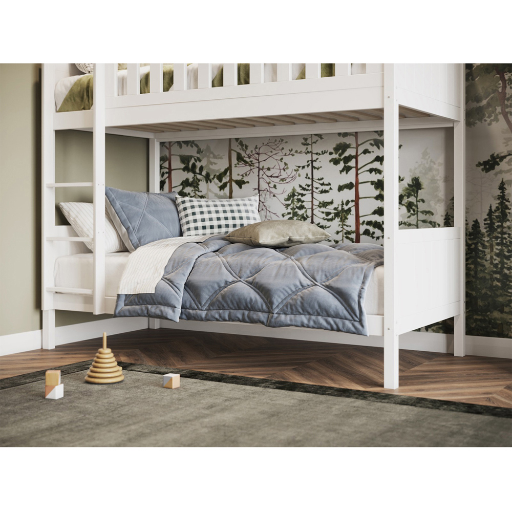 Upgrade your child's bedroom with the Flair Bea White Wooden Bunk Bed. This bunk bed perfectly matches those smaller bedrooms. The solid pine structure allows for a sturdy bed while still looking sleek. It features shaker-style panelled headboards and footboards, creating a comfy and cosy area for your little one to sleep. Its deep ladder makes accessing the top bunk extremely easy. This bed in a classic white colour will fit any colour scheme.