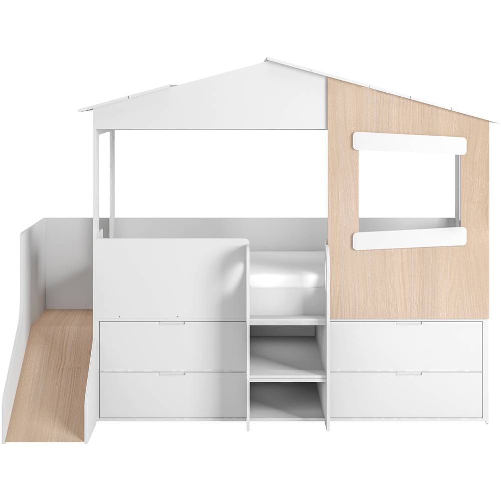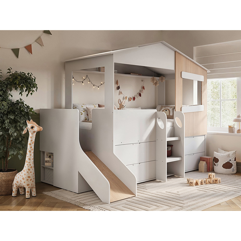 Flair Dreamland White and Oak Play House Slide Mid Sleeper with Storage