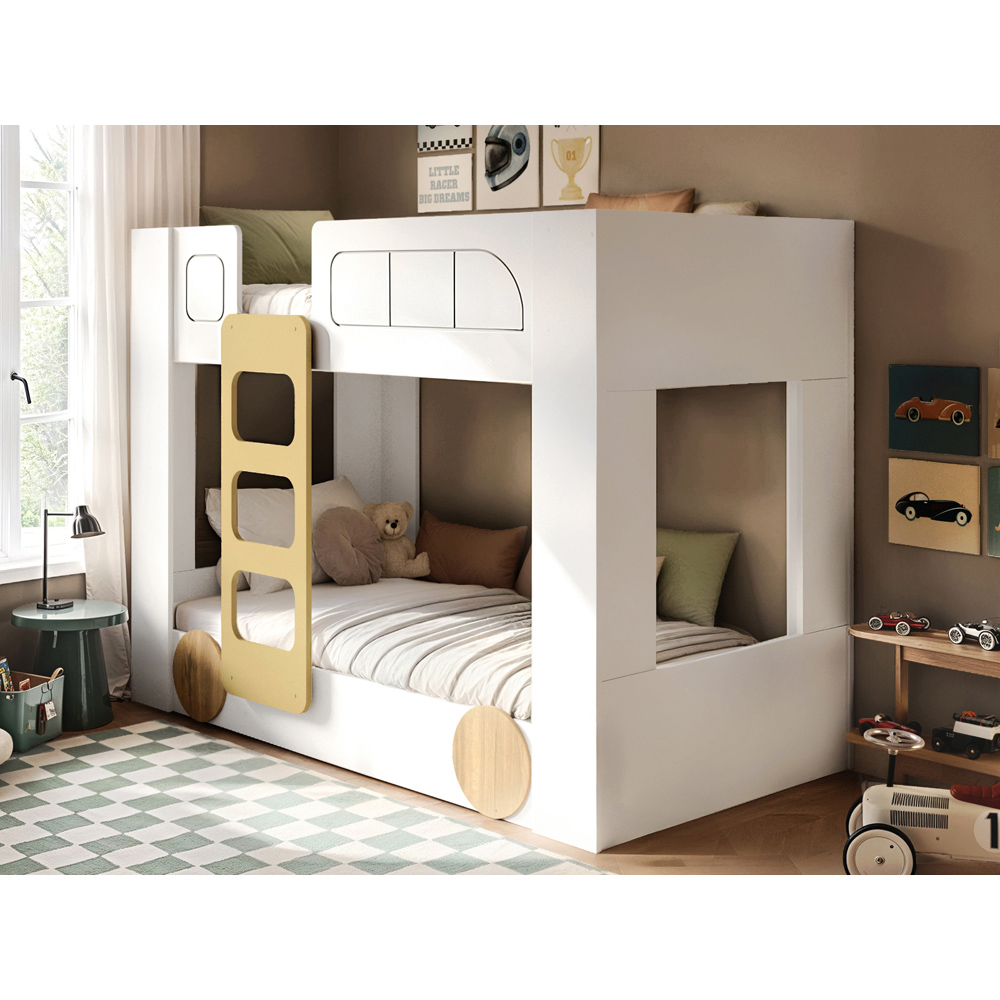 The Flair Eloise Bus Bunk Bed is a fun and creative bed shaped like a double-decker bus. Finished in neutral white, it fits nicely with any bedroom style. It’s a great choice for kids sharing a room or for sleepovers. With a built-in ladder and rounded edges, it’s designed to be both fun and safe. Made from strong materials, it’s built to last and easy to keep clean.