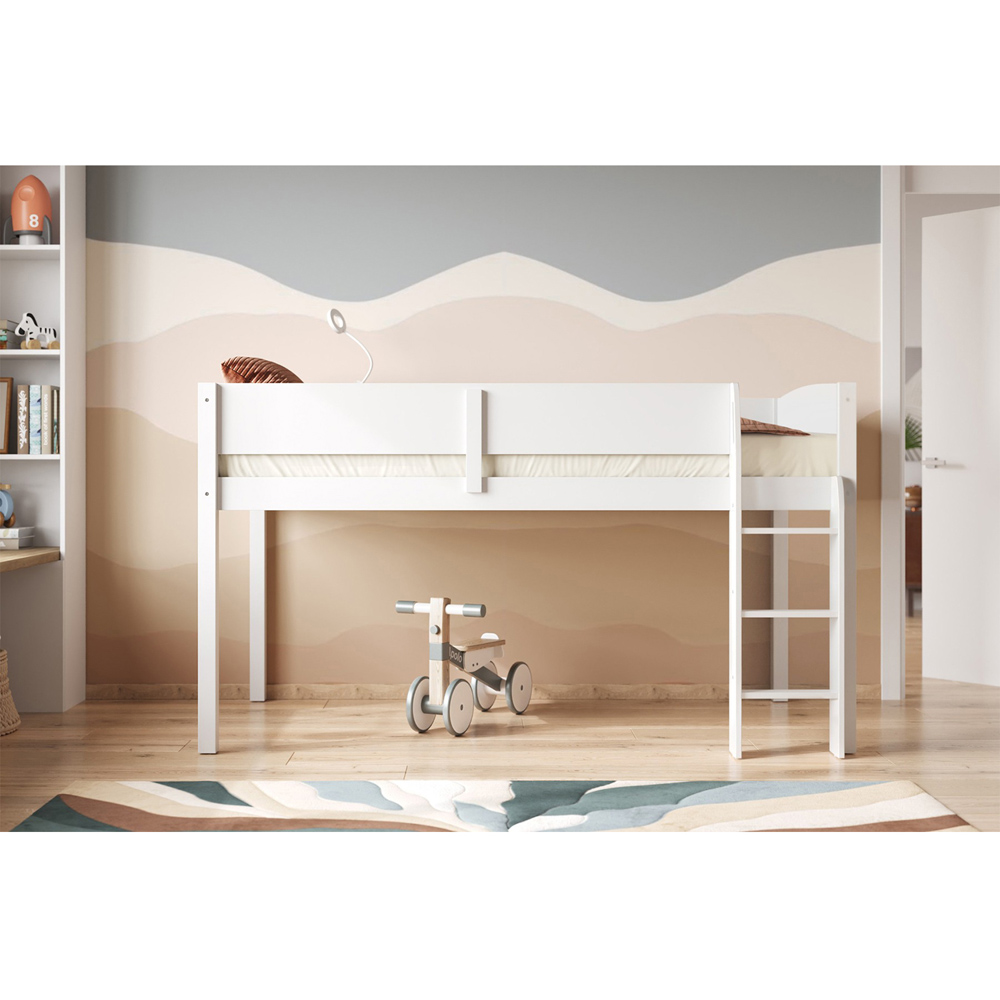 Uplift your children's room with this Flair Loop White Wooden Mid Sleeper Cabin Bed. Designed to fit neatly into your child's bedroom and built from solid and sturdy pine, this sleek, scandi-style bed boasts a simple yet charming design. Curved end panels give the bed a softer look than conventional bed designs, and its safe ladder rungs and study finish make this bed perfect for children upgrading to a more grown-up bed. This mid-sleeper also features smart, safeguard rails, so you can sleep soundly, knowing your child is safe from accidental falls.