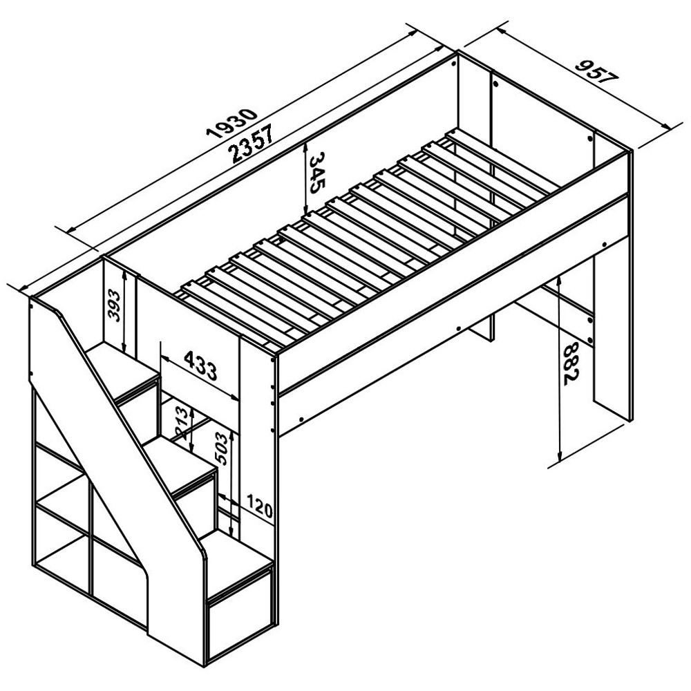 Give your child a bedroom they'll love with the Olivia Mid Sleeper Bed! This clever design combines a cosy single bed with tons of storage and play space, making it perfect for space-savvy bedrooms. More Than Just a Bed: Hidden Toy Treasures: The sturdy steps double as secret storage compartments! Lift them up to reveal a place to stash away toys, keeping the room neat and tidy. Bookworm's Haven: The built-in shelves at the end of the bed are ideal for displaying favourite bedtime stories. Create a cosy reading nook underneath with comfy blankets and a beanbag chair (not included). Creative Corner: The long shelf beneath the bed can transform into a mini desk for crafting projects! Add some colourful paper, pens, and a lamp (all sold separately) to spark their imagination. Safety and Style: Easy Climb Steps: The sturdy steps ensure safe and confident climbing for your little adventurer. Modern Design: The sleek white finish complements any décor, creating a stylish and contemporary look. Grows with Them: Recommended for children aged 6 and over, the Olivia Mid Sleeper Bed is a space-saving solution that will last for years to come. Make bedtime a blast and create a room your child will love! Order your Olivia Mid Sleeper Bed today!