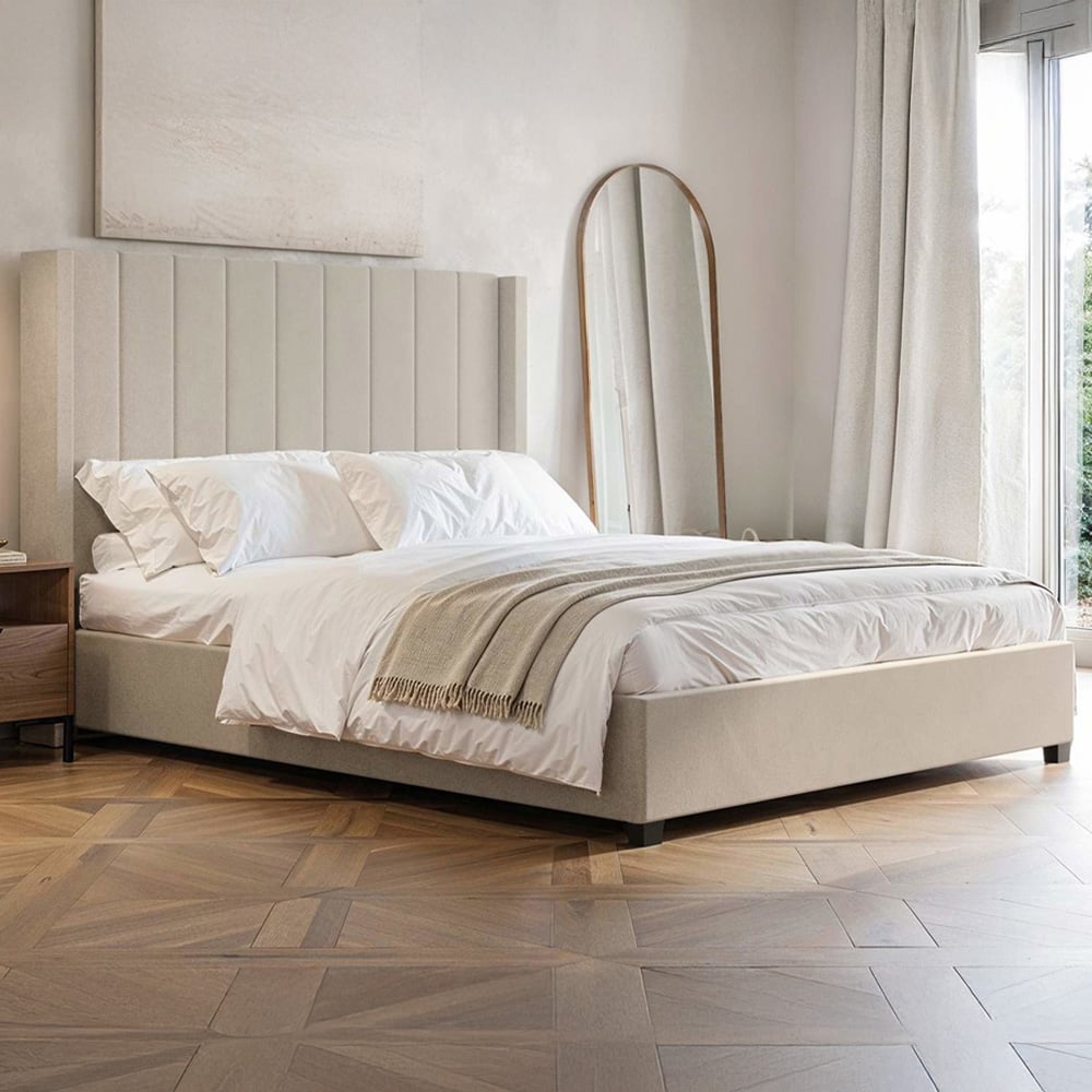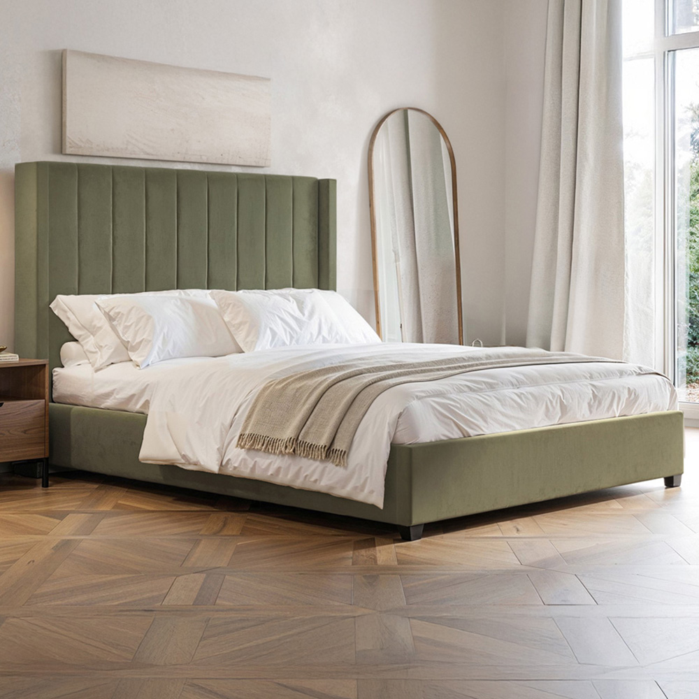 Elevate your bedroom with the Flair Tiggy Velvet Double Ottoman Bed, a perfect blend of luxury and functionality. This bed features a fluted statement winged headboard that commands attention and adds a touch of opulence to any space. Available in a choice of plush beige or black velvet, the Tiggy bed is designed to make a sophisticated statement while providing the utmost comfort. Key Features: Fluted Winged Headboard: The grand, winged design of the headboard, complete with elegant fluted detailing, creates a focal point in your bedroom, offering both style and support for comfortable lounging. Plush Velvet Upholstery: Wrapped in soft, high-quality velvet, available in classic beige or bold black, this bed brings a luxurious texture and refined look to any décor. Ottoman Storage: Beneath the mattress, the Tiggy bed boasts spacious ottoman storage, ideal for keeping bedding, clothes, or other items organised and out of sight. Effortlessly lift the bed base to access ample storage without compromising style.