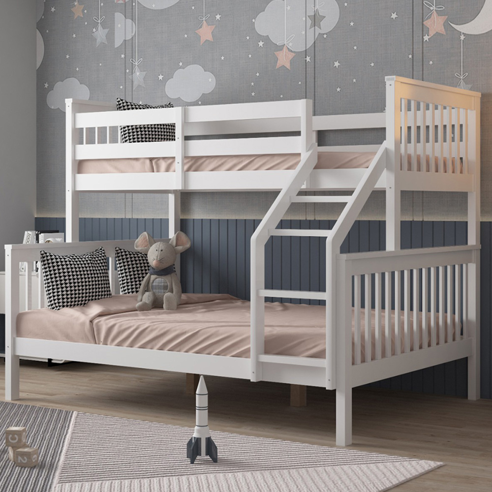 Add comfort and style to your child’s bedroom with this Flair Wooden White Zoom Triple Bunk Bed. With a minimalistic modern shaker-styled design, this zoom triple bunk bed is a great choice to add to your little one's bedroom. The chunky solid pine bunk bed frame has room for a single mattress on top, double underneath, and ample underbed storage space. Finished in the popular grey coating, this bunk bed has a compact design, creating extra playing space for a busy, nonstop family household. Also, it is the ideal bunk bed for siblings or sleepovers.