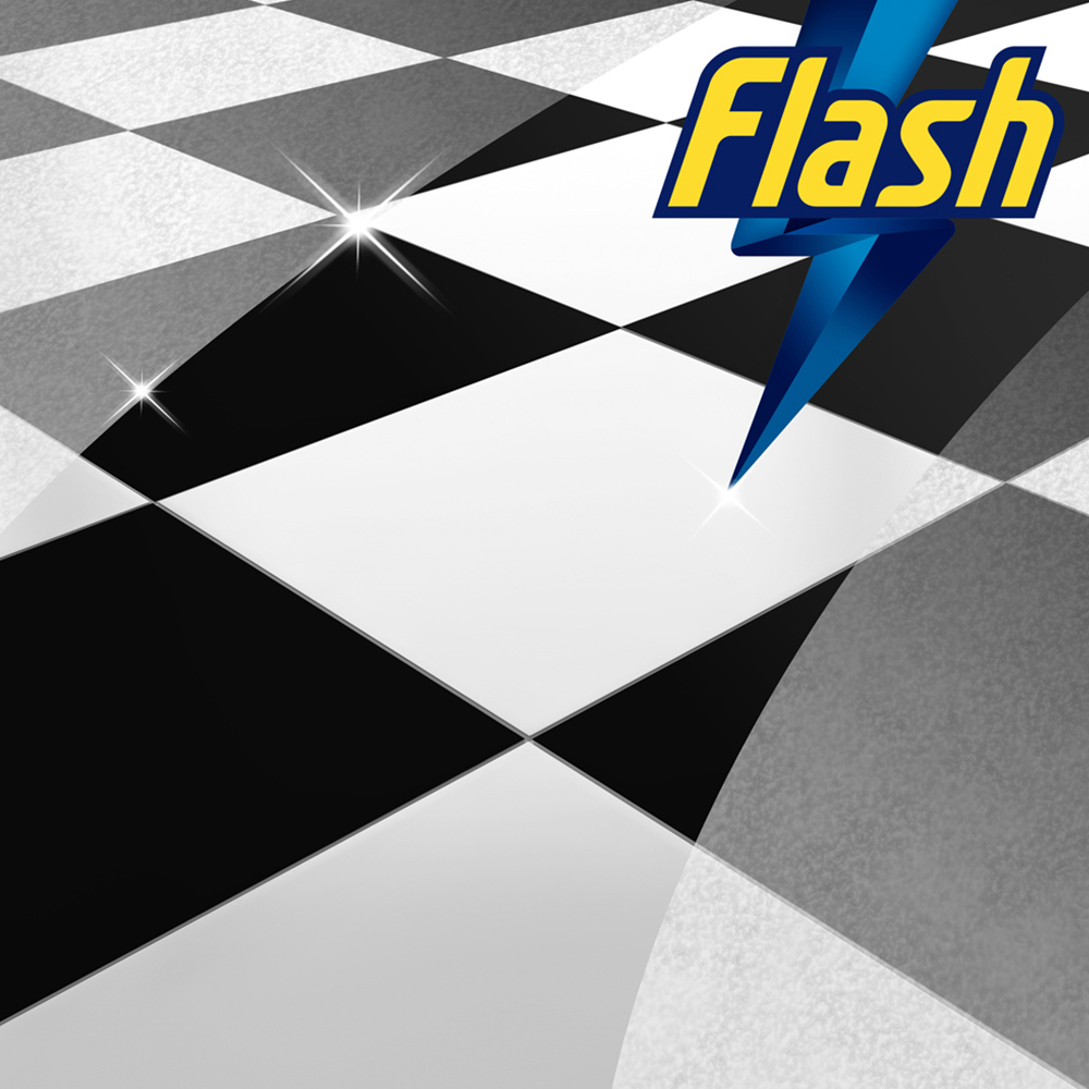 Keep your floor surfaces sparkling clean and smelling fresh with Flash Lemon All Purpose Liquid Cleaner. The cleaner removes up to 100% of dirt and grease and leaves surfaces shiny, thanks to its plant-based ingredient. Free from bleach and ammonia - it fills your home with a delightful lemon scent. Pack size: 950ml.