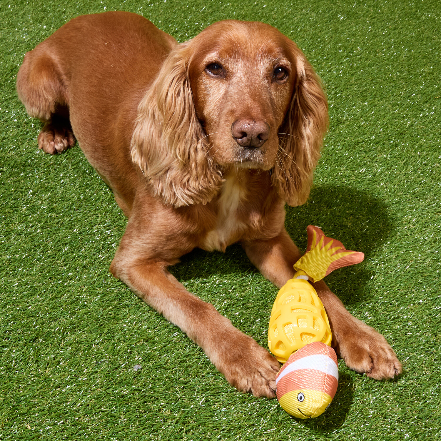 Get a fun playtime companion for your pup with the Fling and Fetch Friends Dog Toy. Available in assorted styles, this soft yet durable toy is designed for high-energy play sessions. It features fun textures and a built-in squeaker to stimulate your pooch's natural instincts, adding an extra layer of excitement to your pet's playtime. Perfect for interactive games of fetch and tug-of-war, it keeps your dog active and entertained.