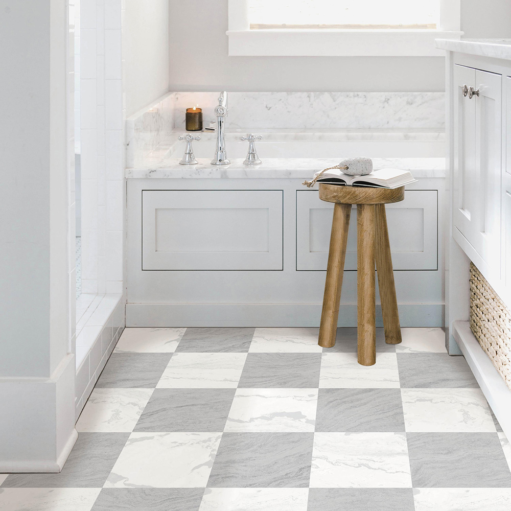 Bring instant elegance to your home with grey peel and stick floor tiles for bathrooms and kitchens, featuring a timeless checkered stone-inspired design that adds a sophisticated touch to any room. Each tile showcases a genuine grey and white marble look, making it easy to refresh your floors without the need for grout or special tools. With water-resistant and washable surfaces, these self adhesive grey vinyl floor tiles are ideal for busy spaces and offer a hassle-free installation, so you can enjoy a stylish update in minutes.