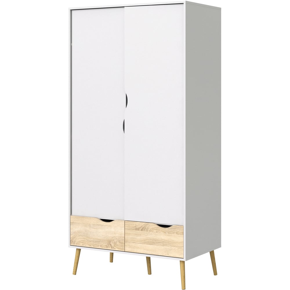 Florence 2 Door 2 Drawer White and Oak Wardrobe