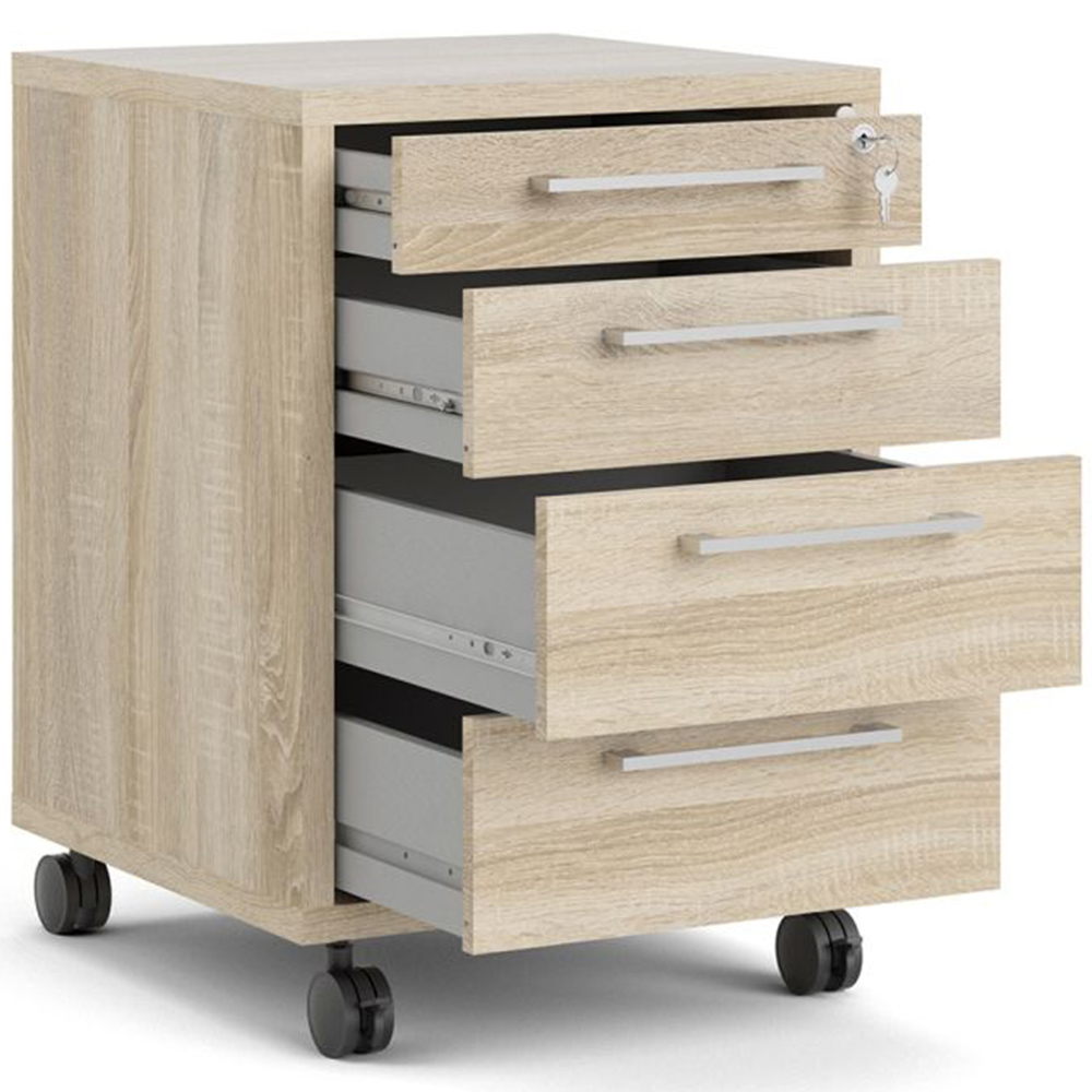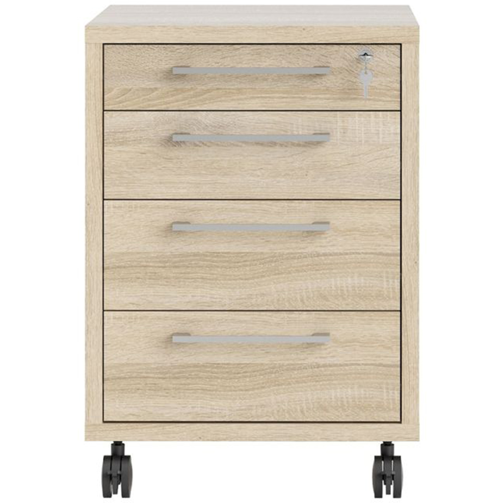 Elevate your office with a touch of sophistication with the Florence 4 Drawer Oak Mobile Cabinet. This mobile storage cabinet is ideal for the home office, and also versatile and stylish enough to be used throughout the home in any room you choose. Made from high-quality laminated board resistant to damage, scratches, moisture and high temperature.