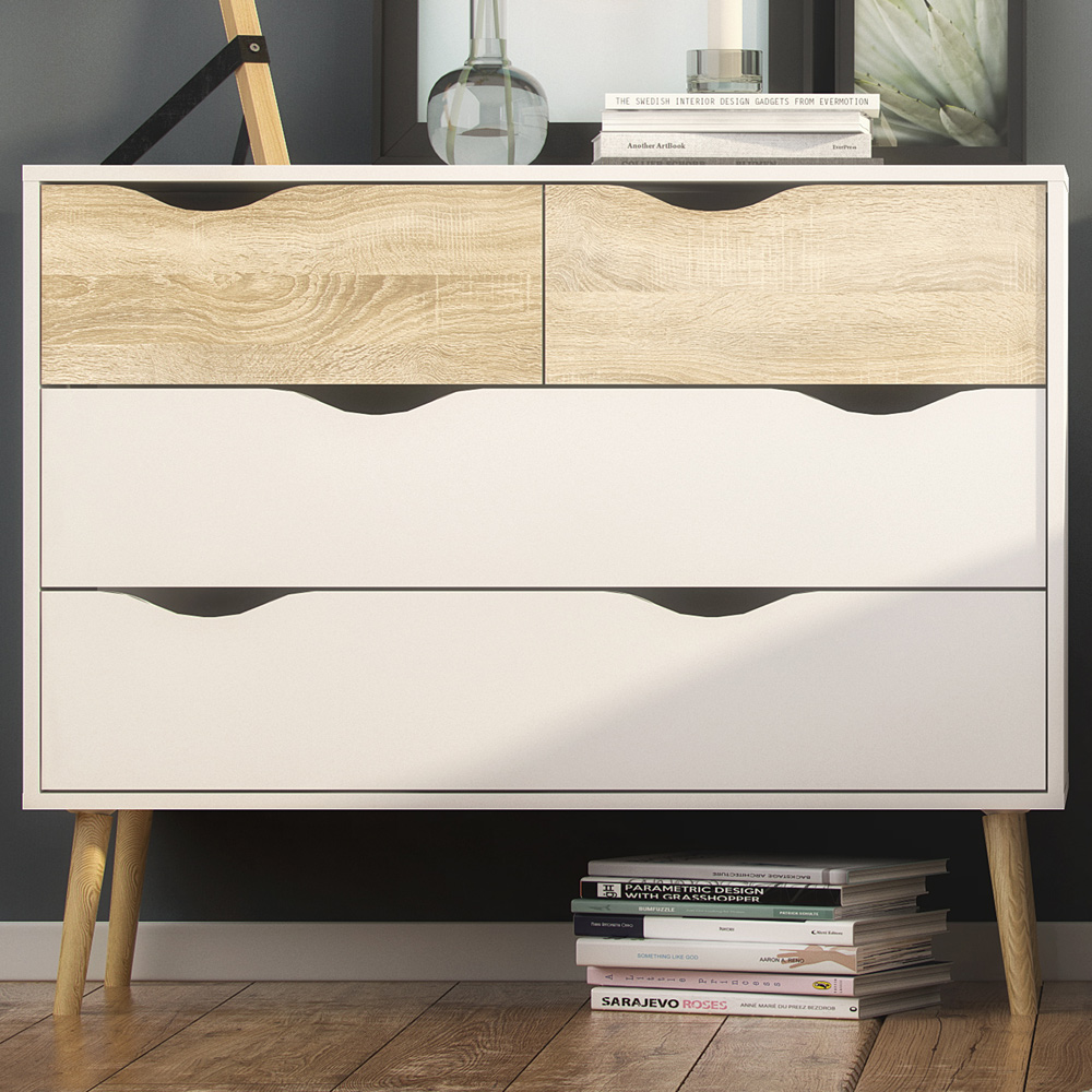 Florence 4 Drawer White and Oak Chest of Drawers