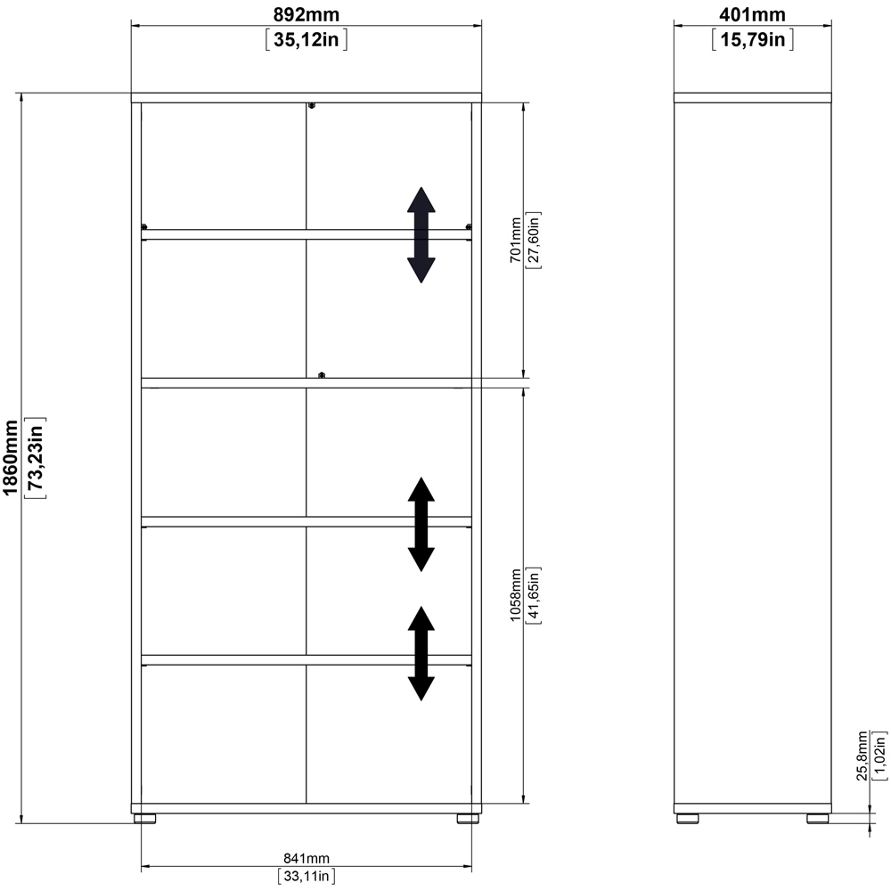 Florence Basic 4 Shelf White Wide Tall Bookcase