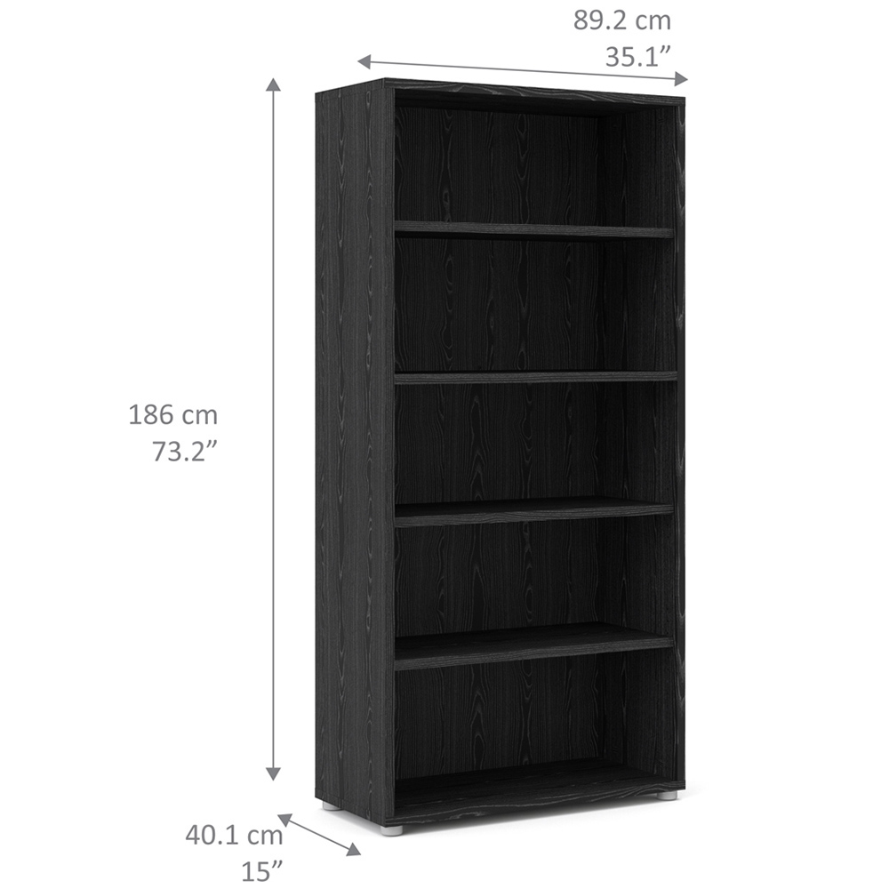 Decortie Midi 5 Shelf Oak Silky Black Modern Tall Bookcase