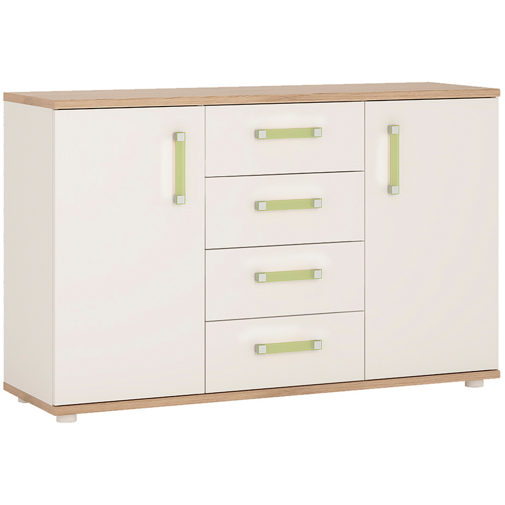 Make a practical addition to your child's room with the Furniture To Go 4KIDS 2-Door 4-Drawer Sideboard with Lemon Handles. Finished in light oak and stunning white high gloss, this sideboard features four wide drawers and a two-door sideboard with internal adjustable shelves, offering extra storage space. It comes with lemon handles. This neutral and functional kids collection is perfect for all age groups.