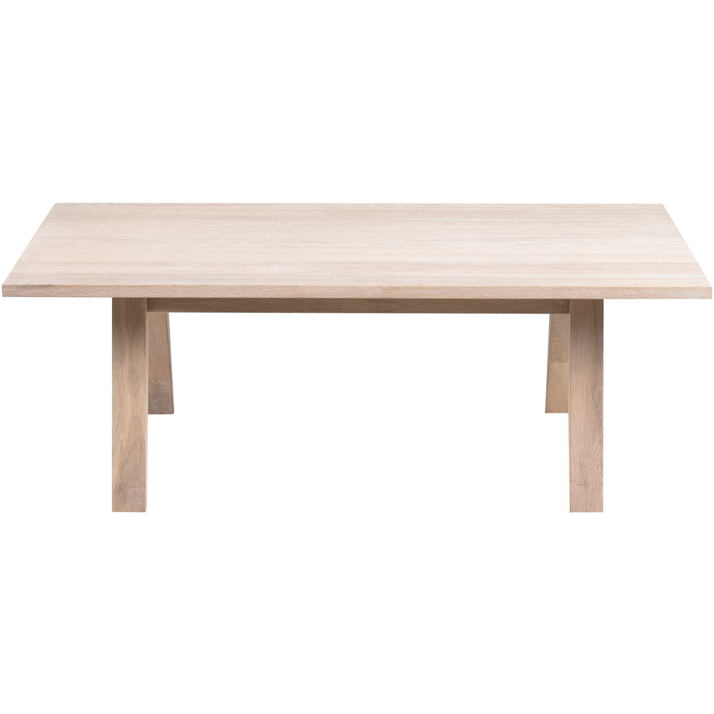 Modern rectangular coffee table with sleek Scandinavian design, white pigmented oiled oak veneer, and contemporary profile. Blends into any interior style.