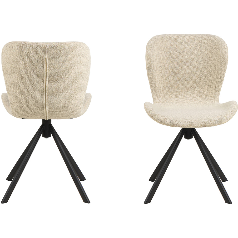Elevate your dining experience with these dining chairs, featuring a matt black steel base with swivel function, and adorned with zigzag stitching. The monza fabric in cream offers a touch of elegance, and they come as a set of two for a complete look.