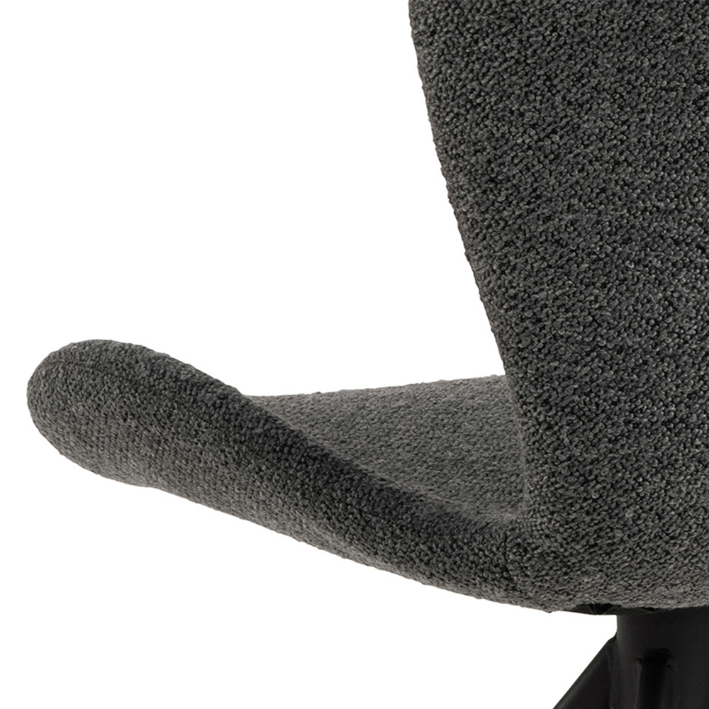 Elevate your dining experience with these dining chairs, featuring a matt black steel base with swivel function, and adorned with zigzag stitching. The monza fabric in dark grey offers a touch of elegance, and they come as a set of two for a complete look.