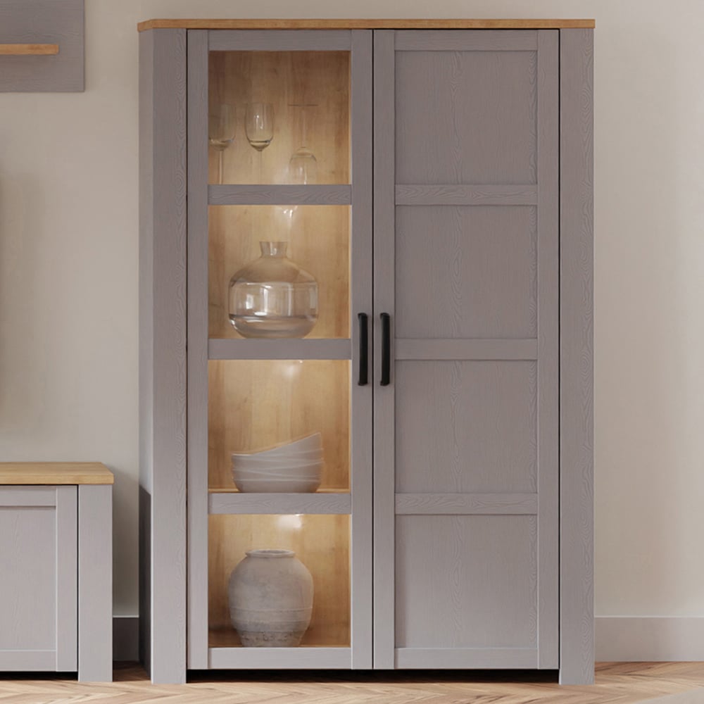 The Bohol 2-Door Display Cabinet blends rustic charm with modern functionality. With black handles, soft-close doors, and LED lighting, it offers both elegance and practicality. Available in Navy & Oak or White & Oak, this stylish cabinet is designed to be a standout feature in any living space.