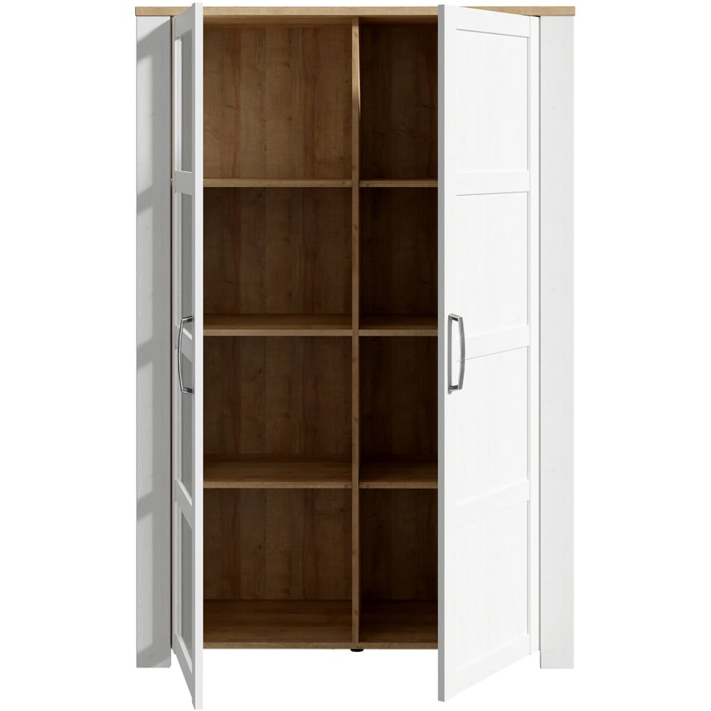 The Bohol 2-Door Display Cabinet blends rustic charm with modern functionality. With black handles, soft-close doors, and LED lighting, it offers both elegance and practicality. Available in Navy & Oak or Grey & Oak, this stylish cabinet is designed to be a standout feature in any living space.