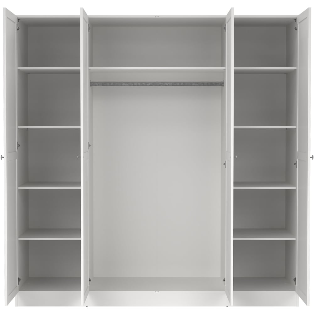 Introducing the Brande Wardrobe: a blend of contemporary style and practical functionality. Boasting four frame doors and nine shelves, with six adjustable to your preference, it adapts to your storage needs effortlessly. Whether you prefer hanging clothes or neatly folding them, the Brande Wardrobe offers versatile organization options for your belongings.